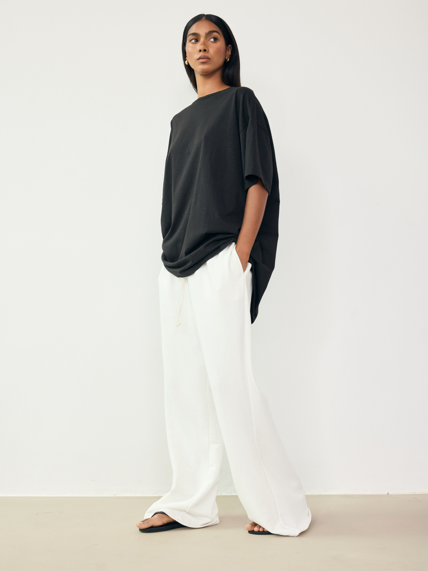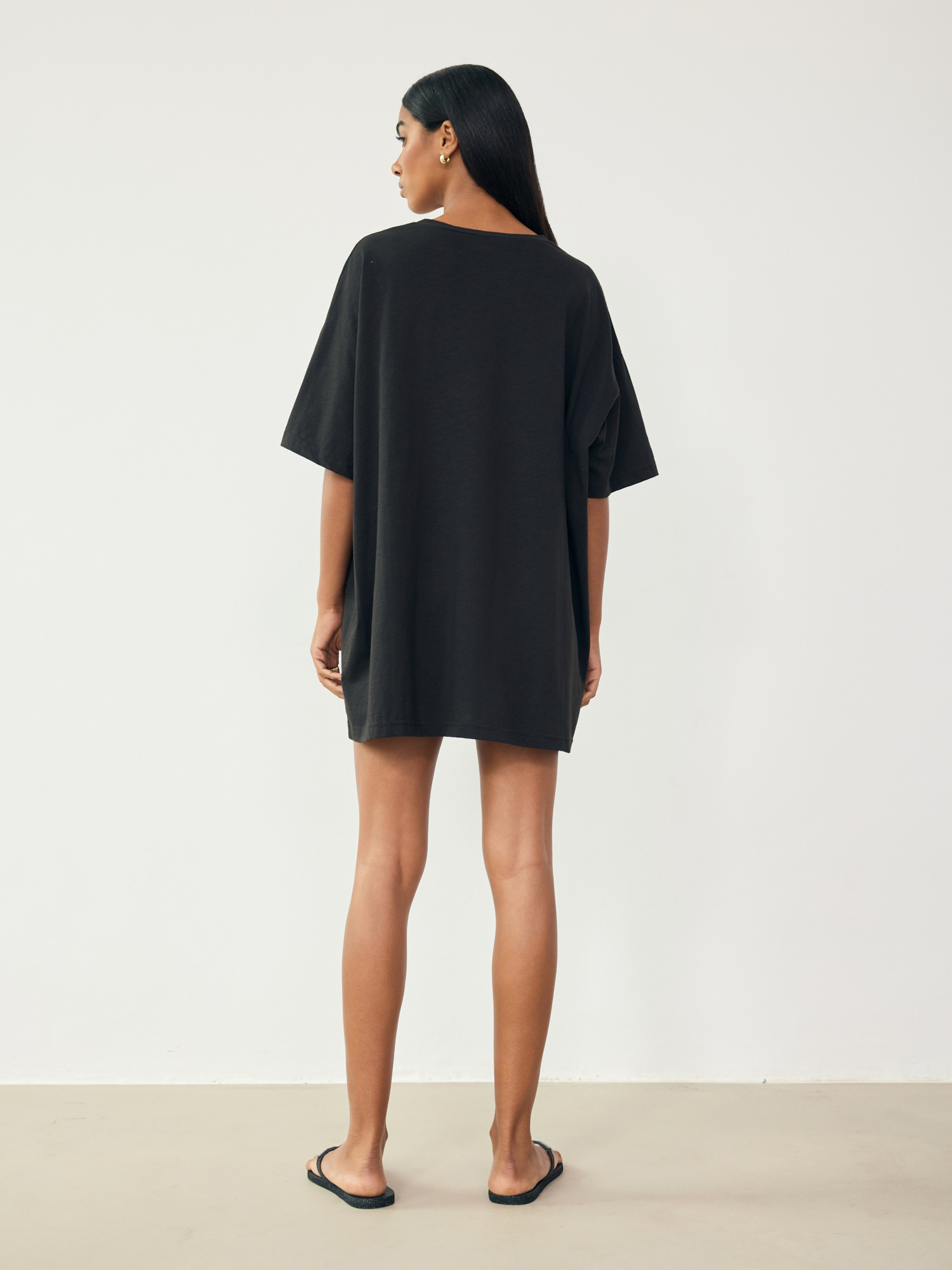 Oversize T-shirt with characteristic elongated sleeves, made of soft cotton with a characteristic texture - delicate and pleasant to wear. It's long, so you can easily wear it as a tunic with shorts and of course with our OVERSIZE SWEATSHIRTS (the one that always sticks out). Trust us, it will be your new fave basic!
