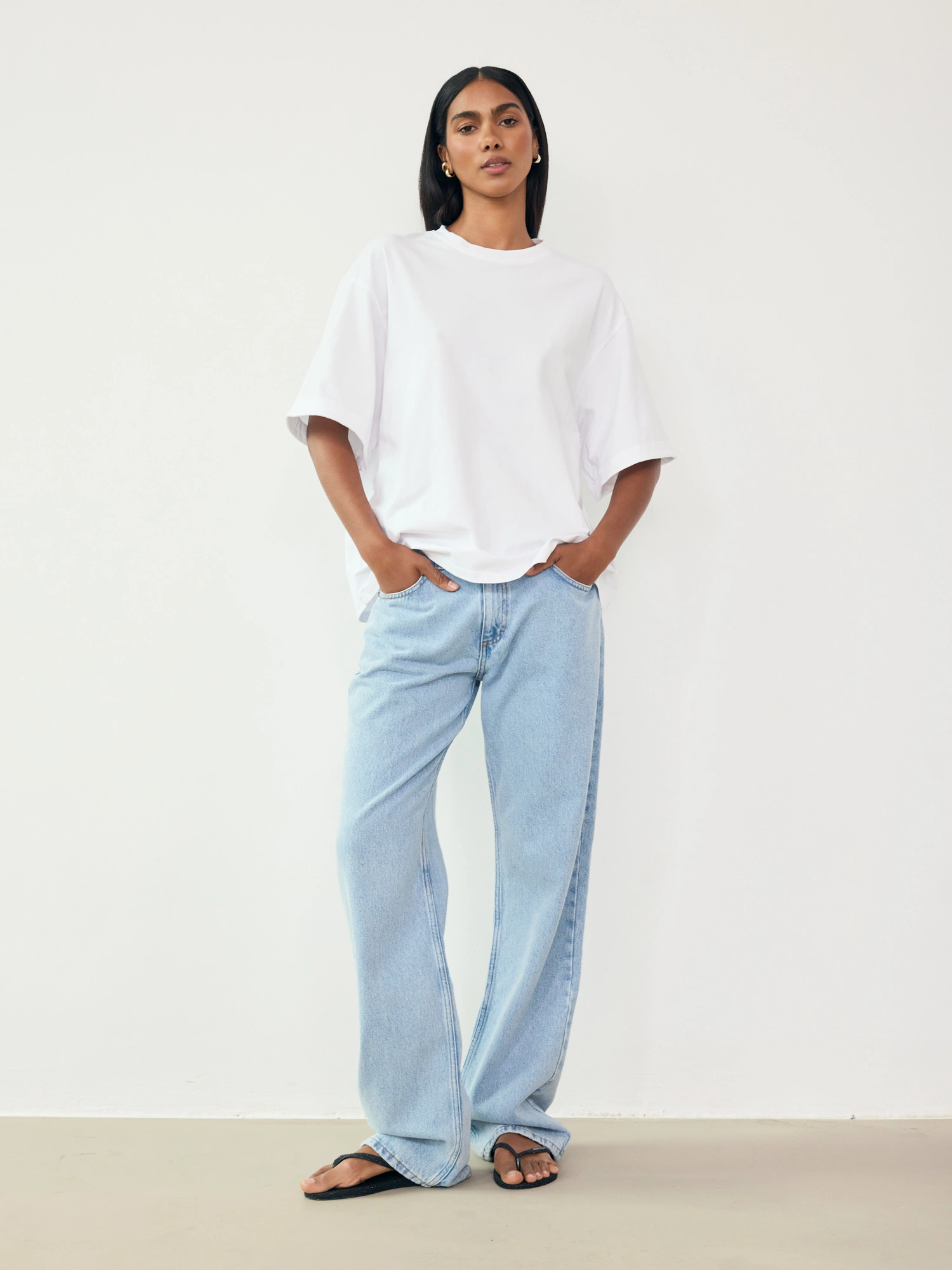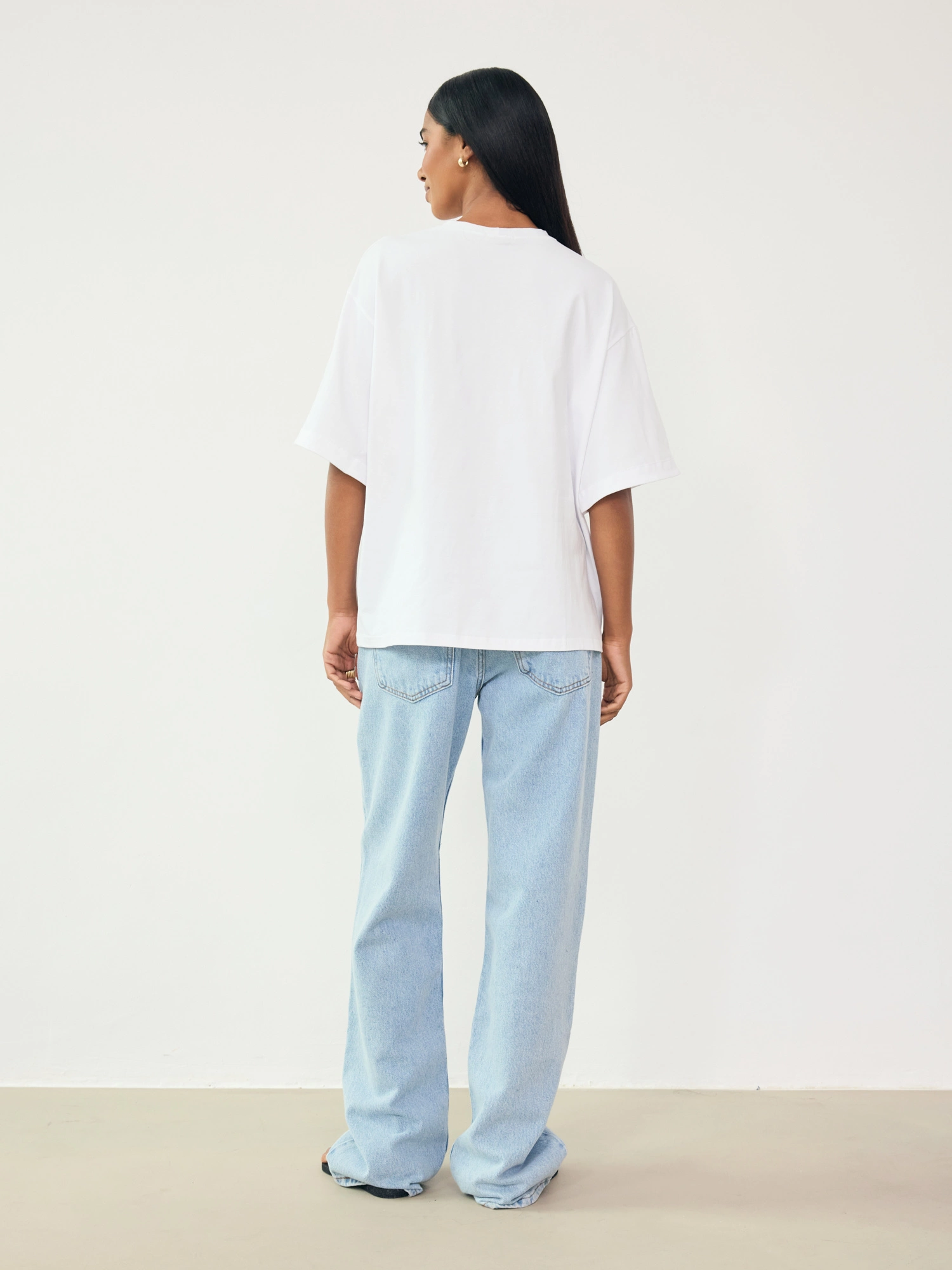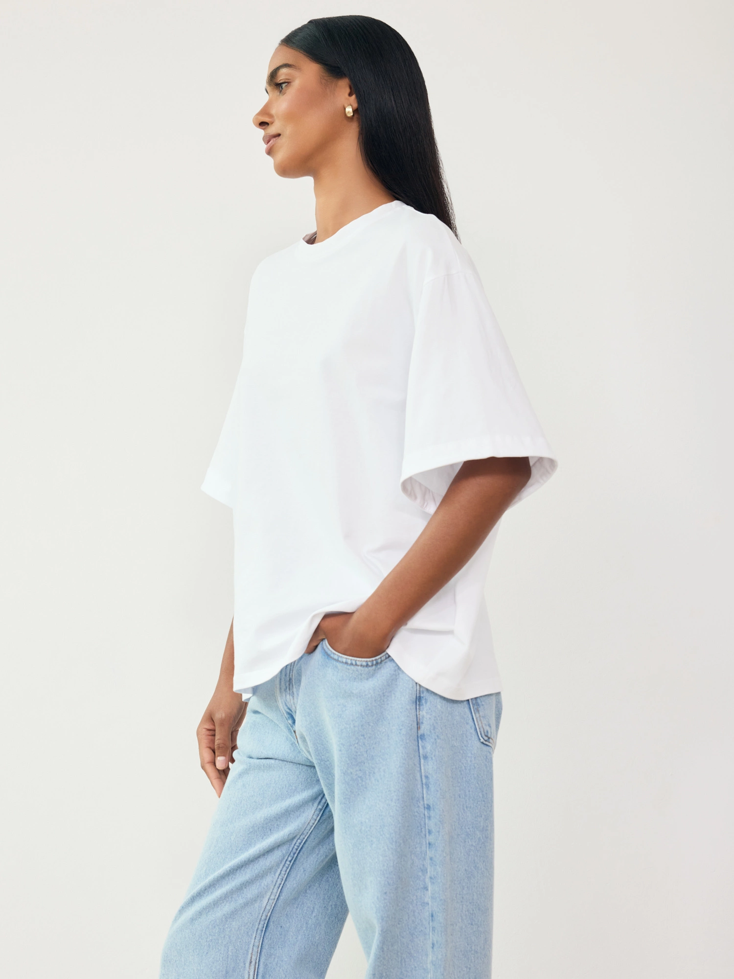 An oversized T-shirt made from soft, gentle, and incredibly skin-friendly cotton. With its relaxed fit, clean lines, and perfectly extended sleeves, it’s a versatile piece that pairs just as well with jeans as it does with tailored trousers for a more elevated look. Add jewelry and accessories to elevate your outfit—and enjoy comfort in a minimalist style.