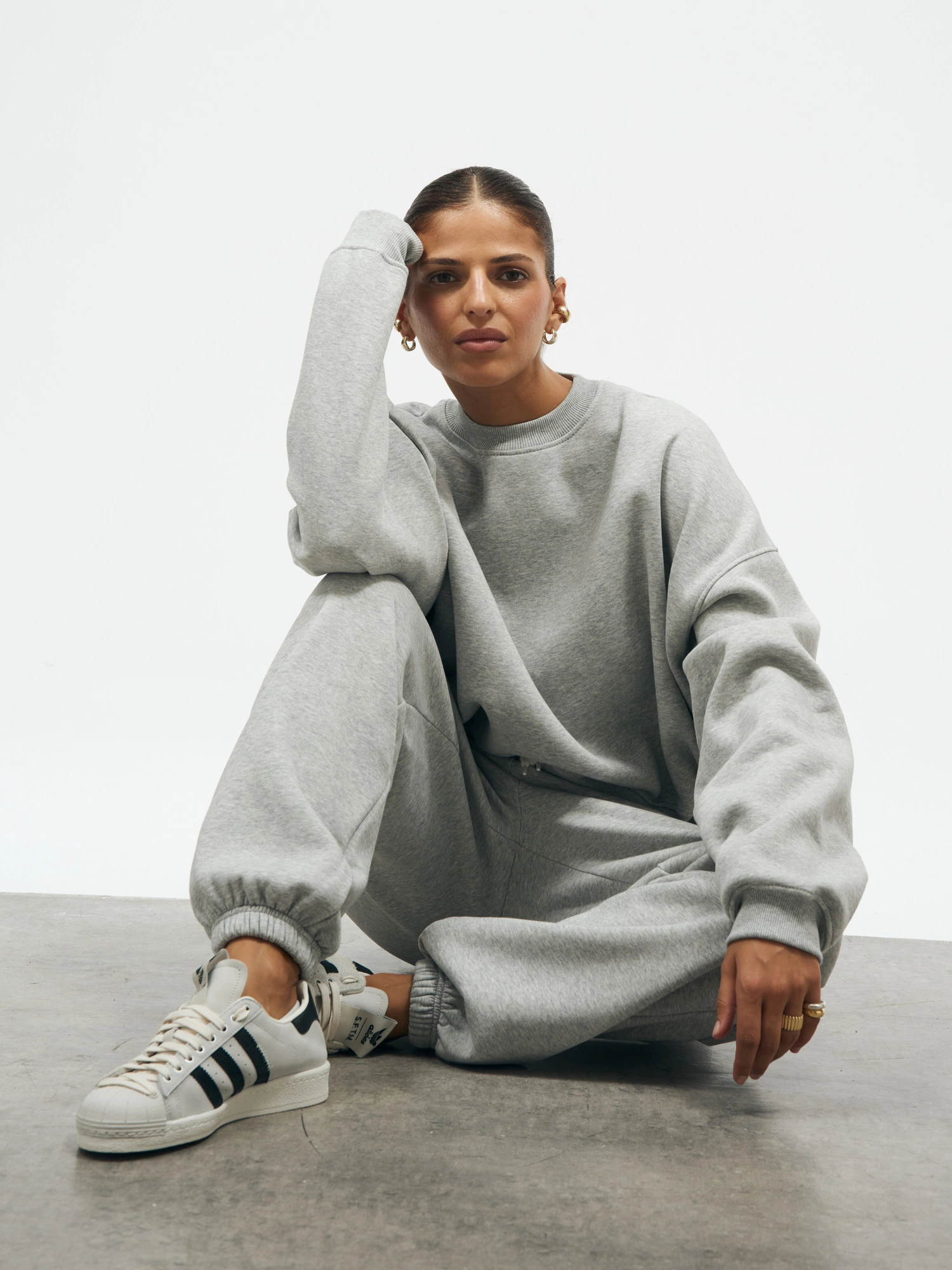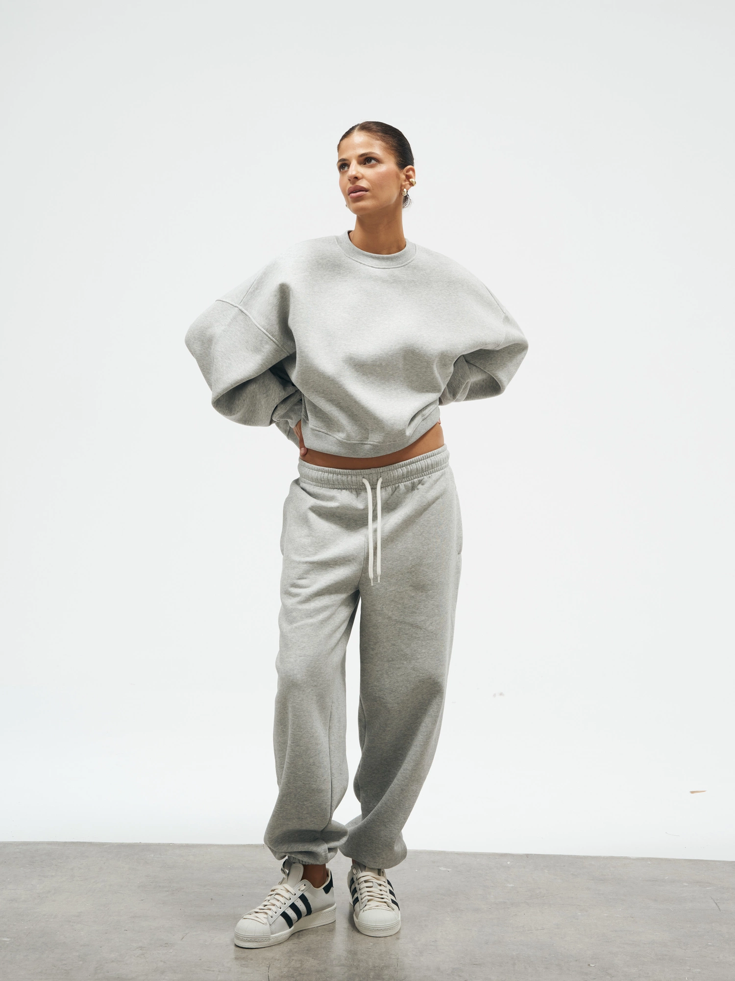 Short, oversized sweatshirt with a wide ribbing at the bottom. The sleeves have been characteristically widened to ensure full wearing comfort. This is a sweatshirt that will fit not only the dedicated JOGGERS, but will also create a great set with elegant pants or jeans. Made of the highest quality organic cotton with linen.