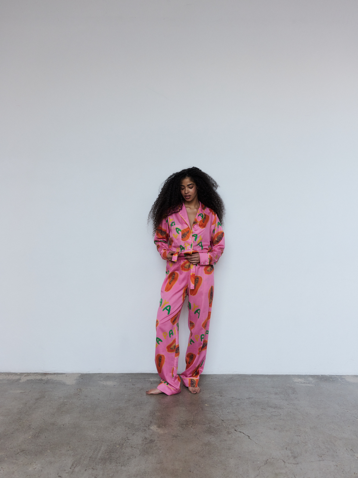 Pajama pants made of soft and breathable cotton. Classic cut and straight, comfy legs. An elastic band with a binding at the waist. The whole is closed in unique colors and prints, which will make yoy feel stylish even moments after waking up.