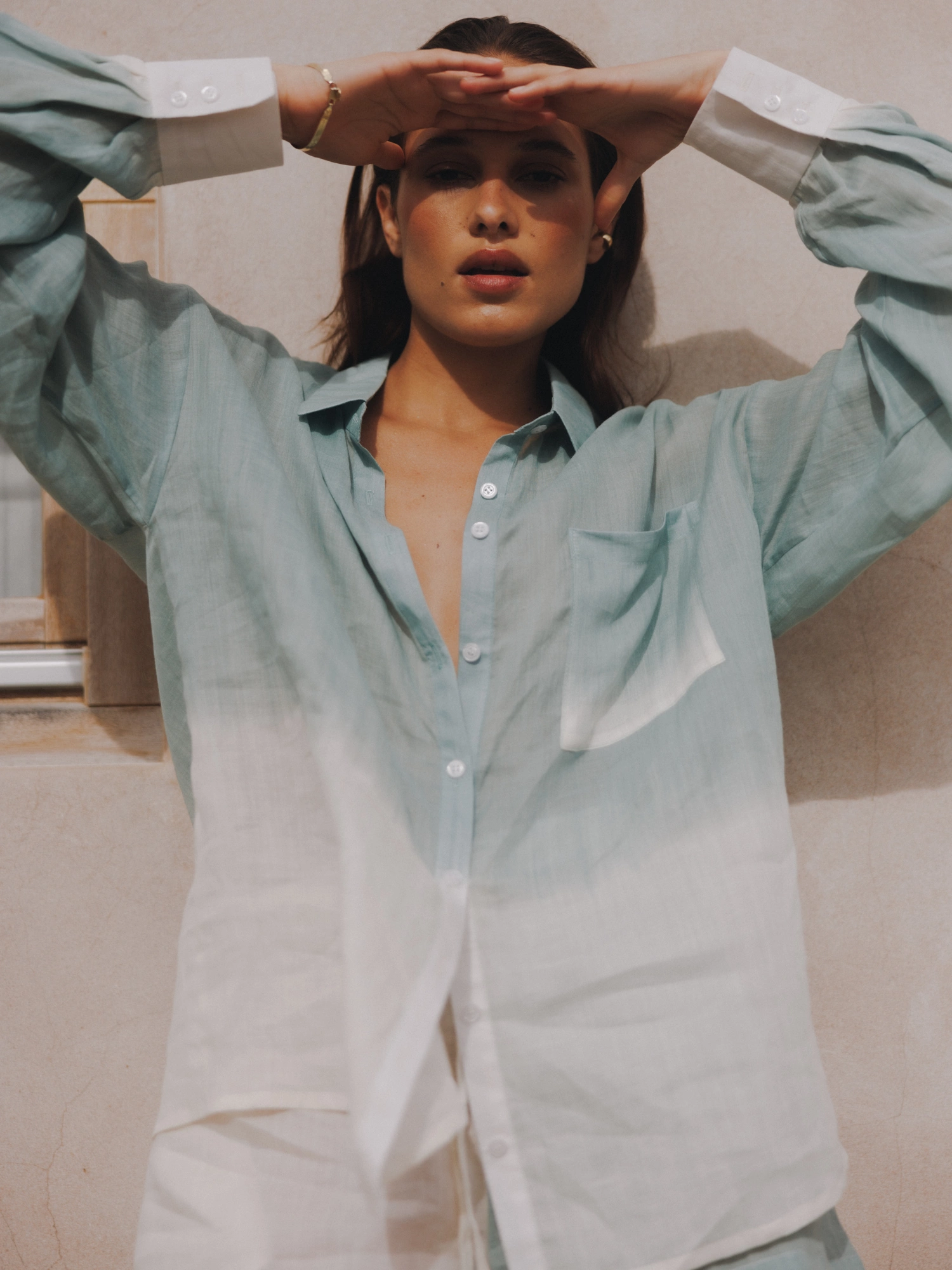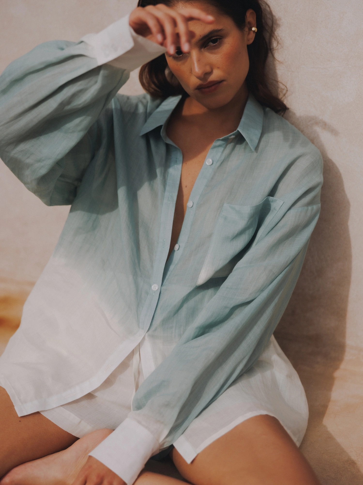 Oversize shirt made of thin ramie with a distinctive shaded effect. Ramie is extremely breathable, pleasant to wear, and cool to the touch. It is a material that will be an excellent choice for those with sensitive and delicate skin, as it is resistant to bacteria, fungi or mold. The shirt has long, slightly wider sleeves, finished with a narrow hem. It is part of a set and together with MARE SHORTS creates a unique summer look, which brings sporty elegance to a completely different level.