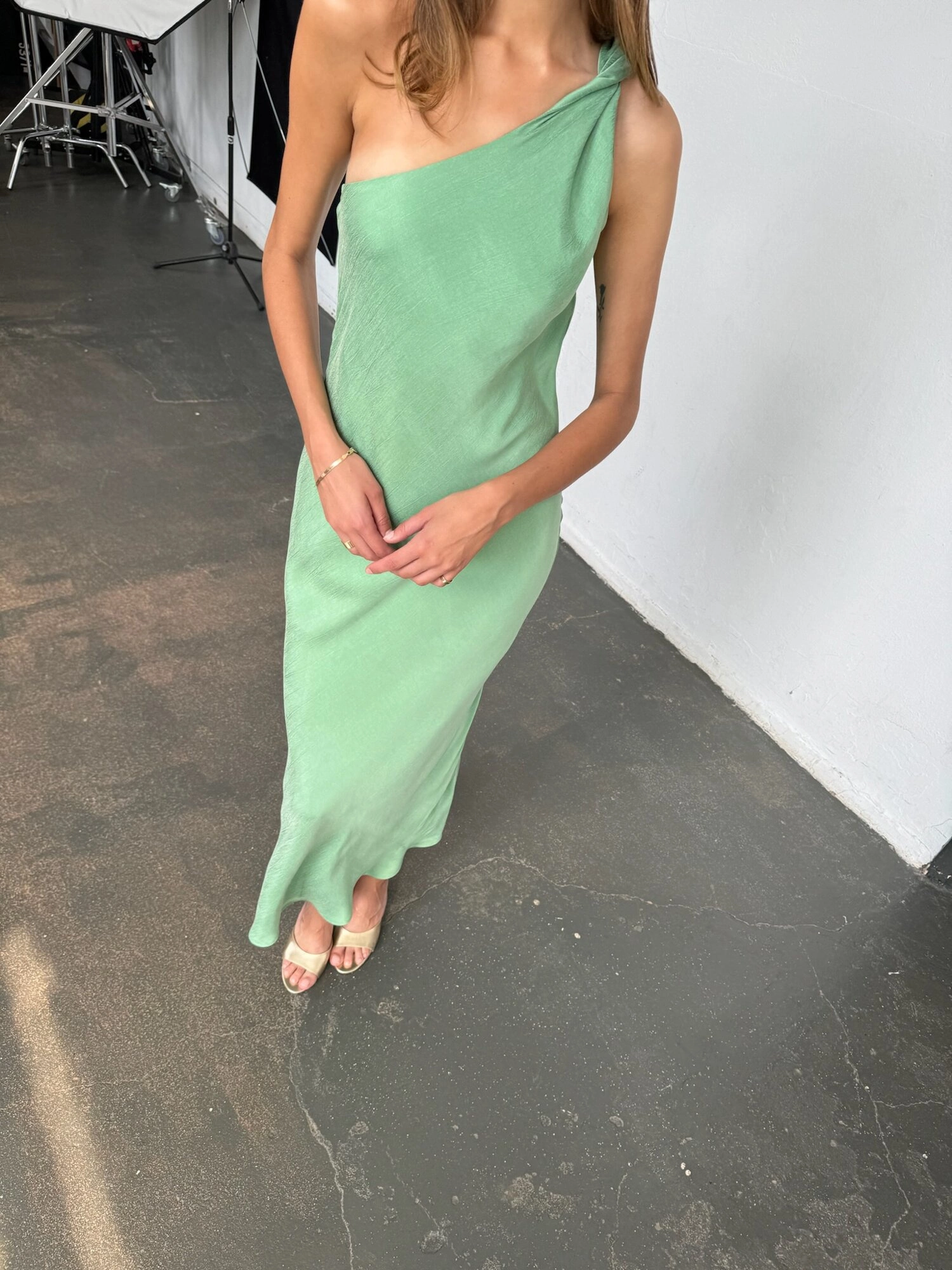 Banquet maxi dress, made of a soft and flowing viscose and lyocell blend with a delicate satin sheen. It is fitted with a slightly flared bottom. Its greatest asset, however, is the asymmetrical top and twisted shoulder strap, which beautifully exposes the shoulder and emphasizes the bust line. This is an extremely elegant proposal, which is sure to be perfect for the most important and grand exits.