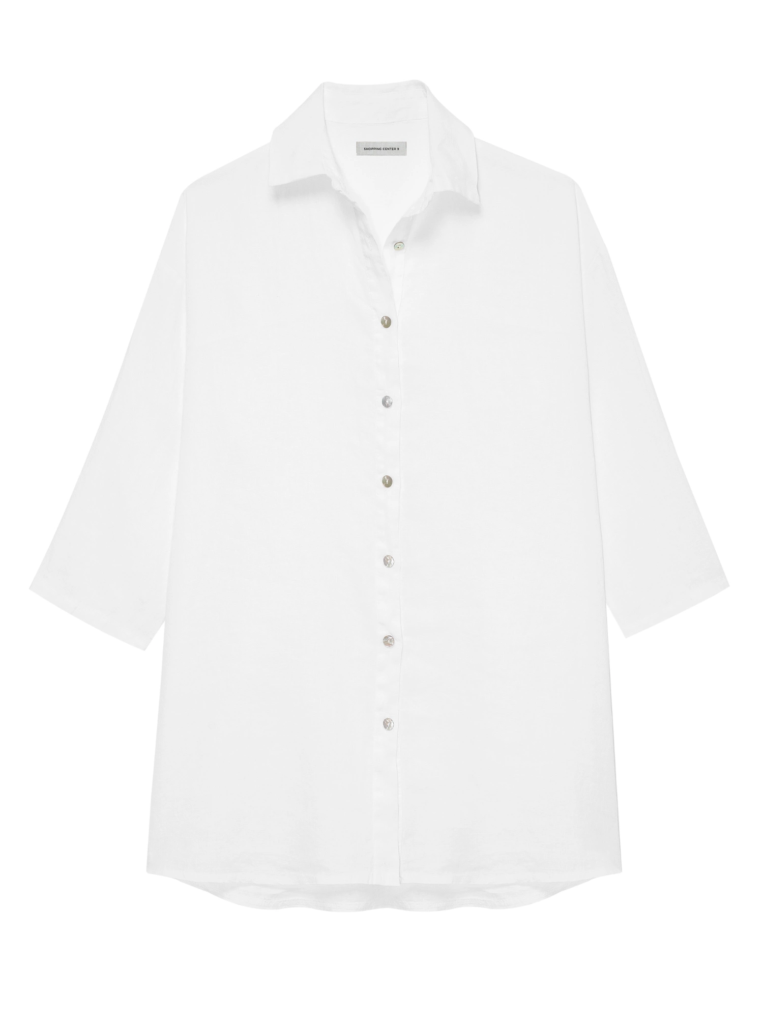 Extremely breathable, made entirely of natural linen, making it perfect especially on hot days. Its oversized cut makes it great for both urban outfits with shorts and beach versions with swimwear.