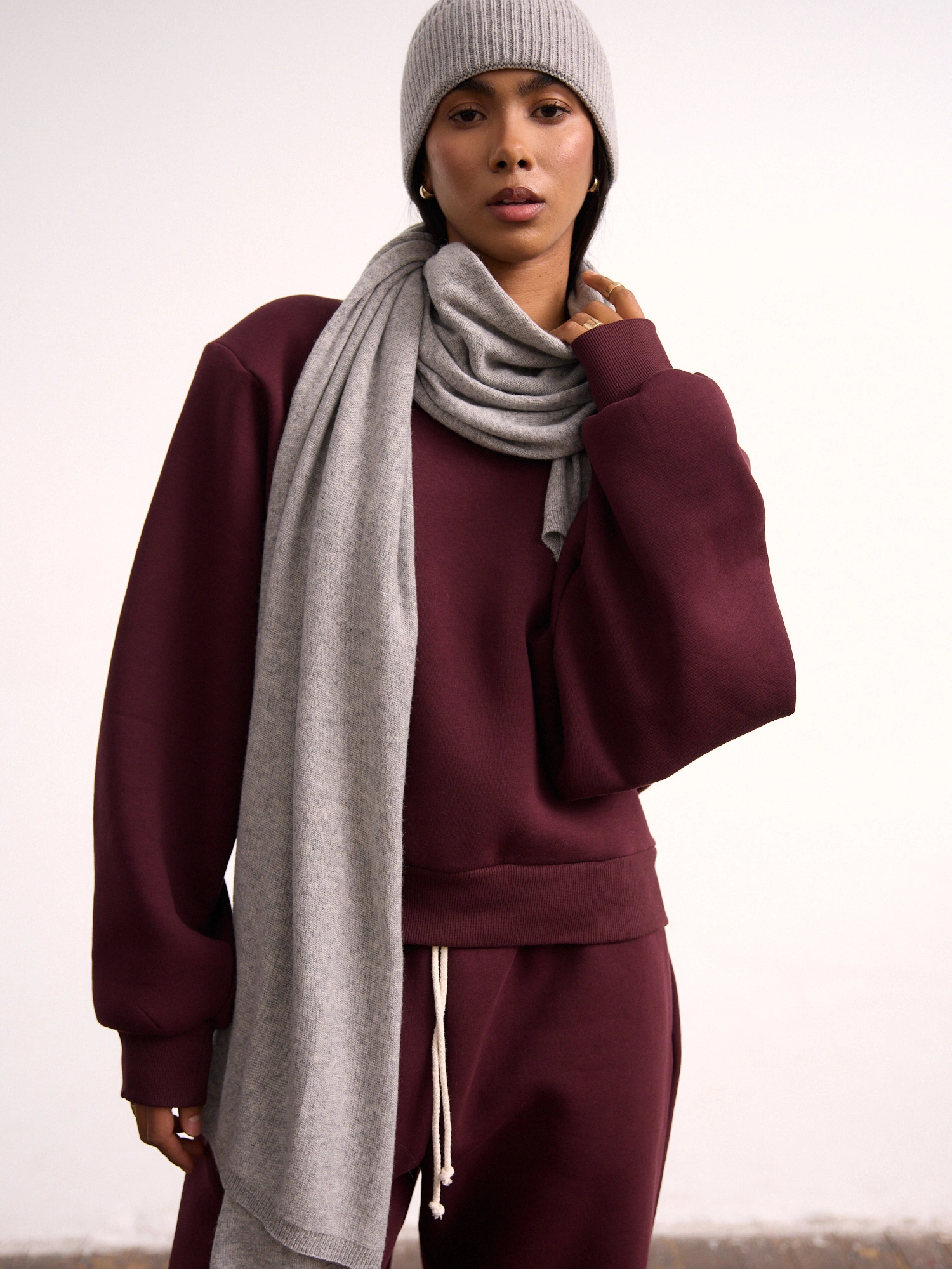 A simple scarf made from an incredibly soft, non-itchy knit with a blend of cashmere and wool (50% each!). It's long, elegant, and perfectly wide, and when paired with the matching HAT, it creates a set that will keep you warm on cooler days. This is a fantastic accessory that will elevate any fall or winter outfit, and the two versatile colors will match everything.