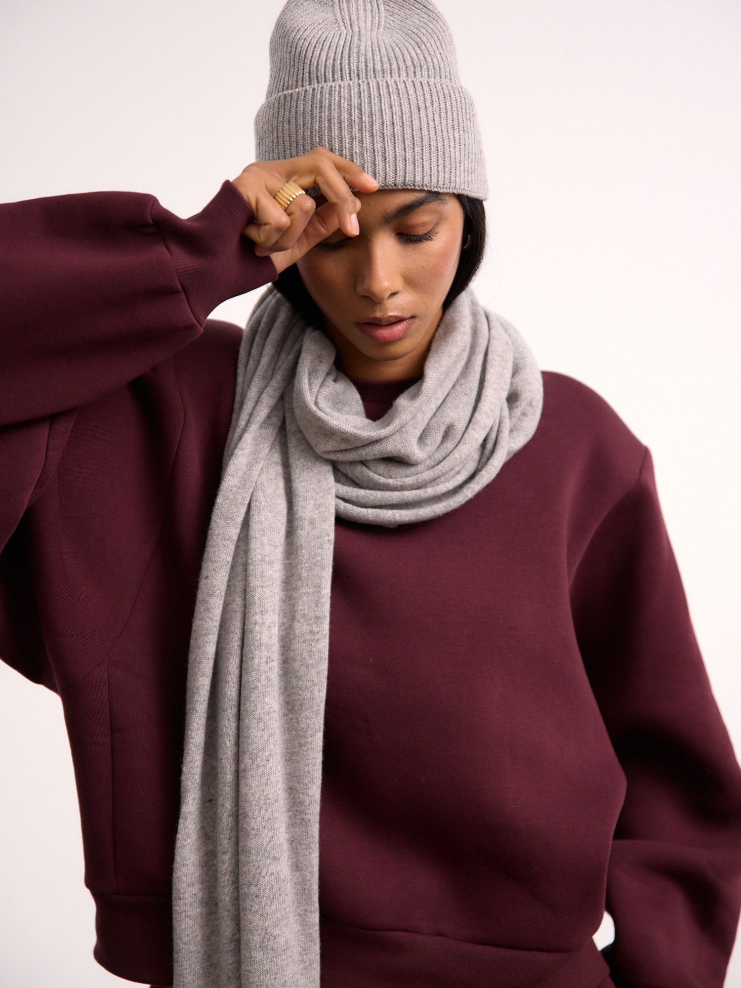 A beanie made from an incredibly soft, non-itchy knit with a blend of cashmere and wool (50% each!). It features a timeless design with a classic folded brim, and when paired with the matching SCARF, it creates a set that will keep you warm on cooler days. This is a fantastic accessory that will elevate any fall or winter outfit, and the two versatile colors will match everything.