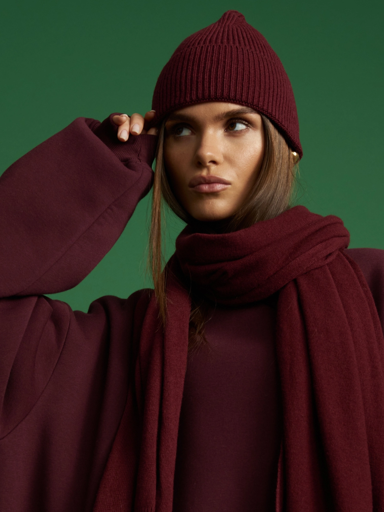 A beanie made from an incredibly soft, non-itchy knit with a blend of cashmere and wool (50% each!). It features a timeless design with a classic folded brim, and when paired with the matching SCARF, it creates a set that will keep you warm on cooler days. This is a fantastic accessory that will elevate any fall or winter outfit, and the two versatile colors will match everything.