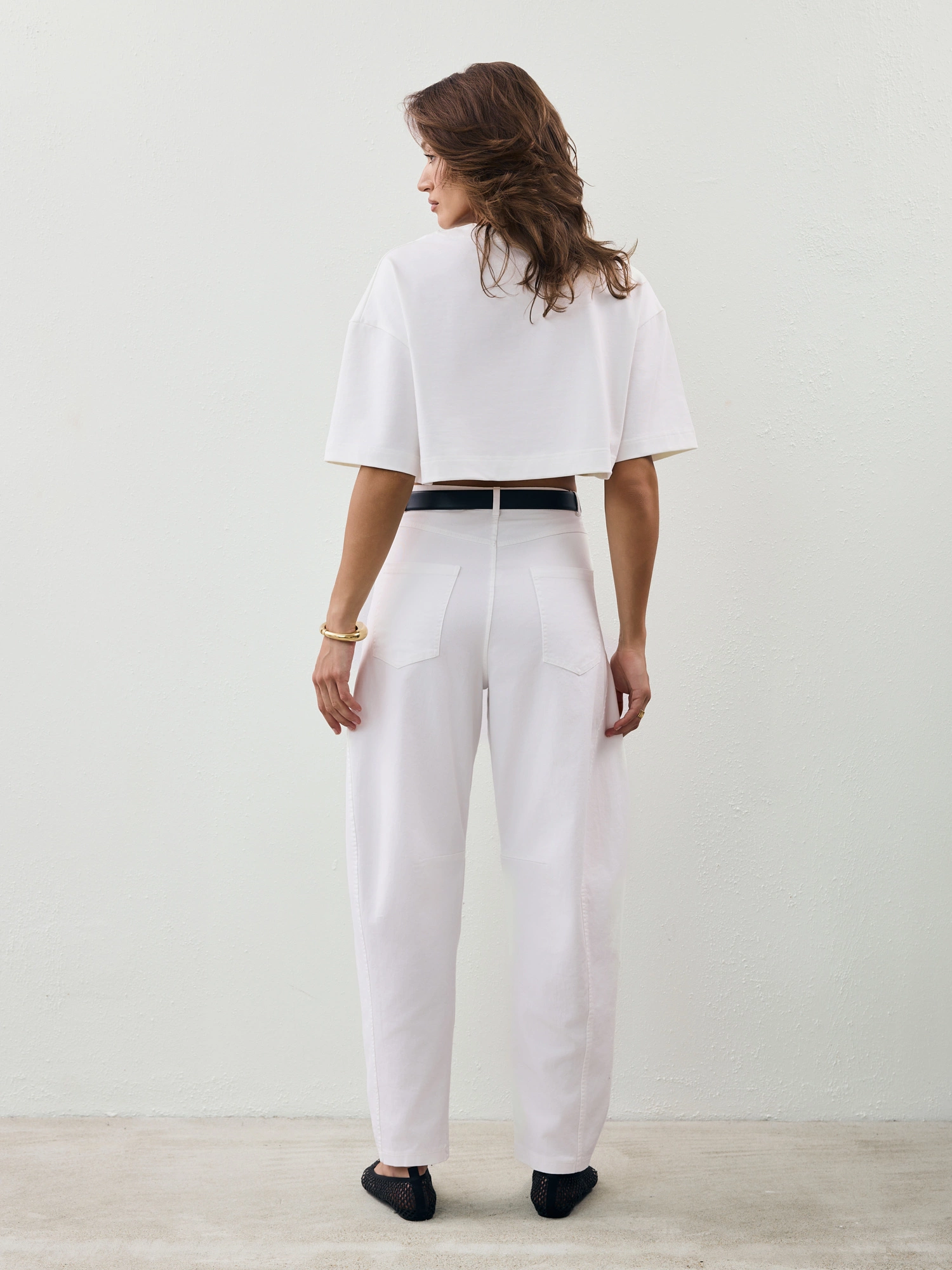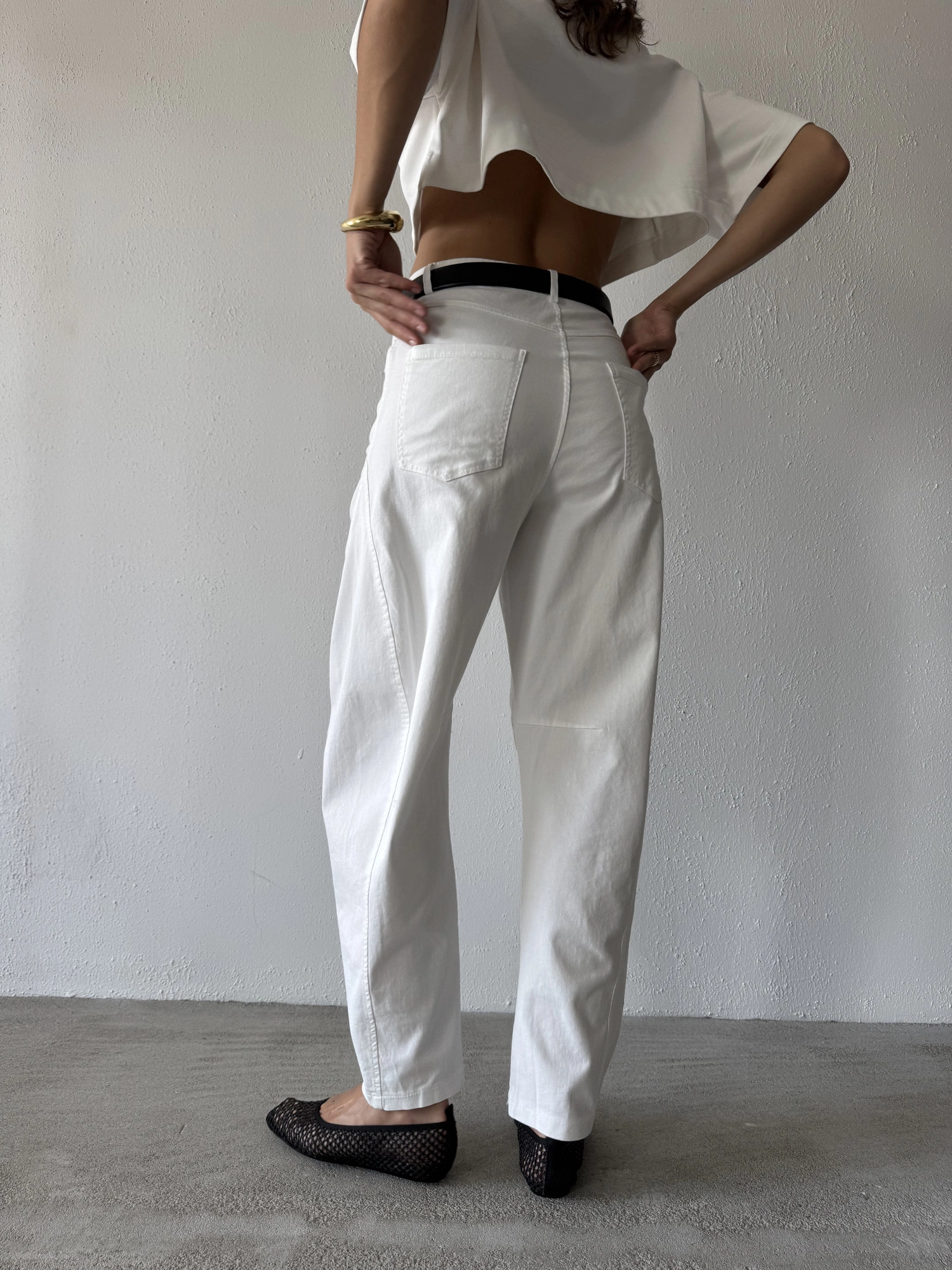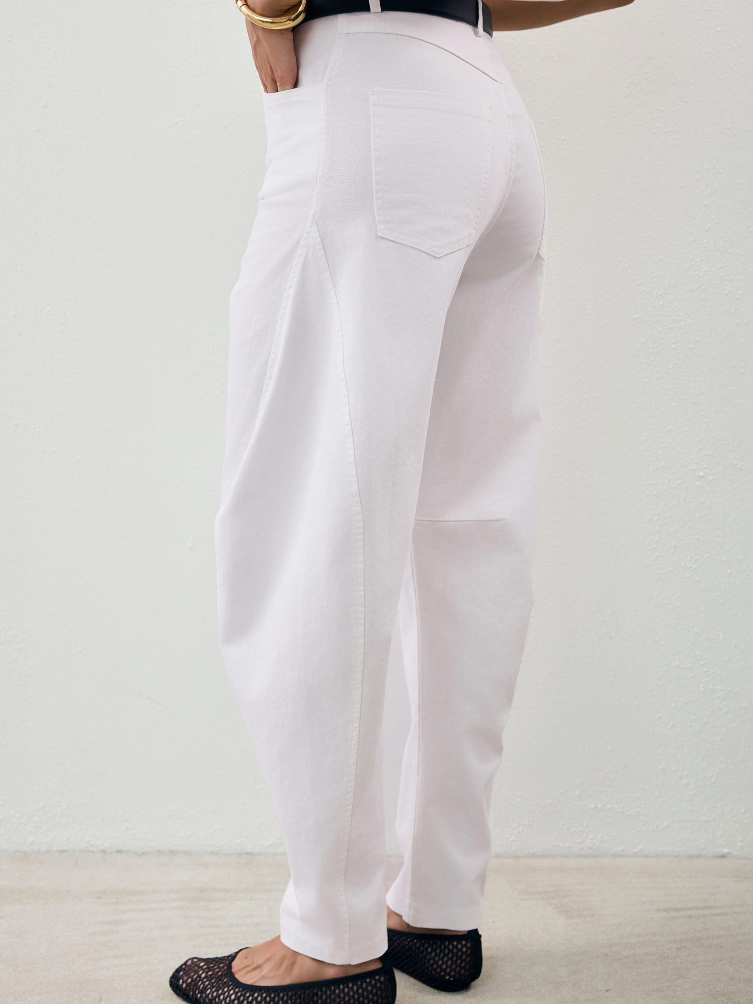 Pants in this season’s trendiest balloon fit—roomier at the thighs and tapered toward the ankles. Made from soft, diagonal-woven cotton in a fresh white shade. Wear them low on the hips or high at the waist—whichever suits your style best. Pair with a fitted top or an oversized T-shirt and a biker jacket. Elevate the look with your favorite sneakers or heels—these pants go with everything and will add a unique touch to any outfit.