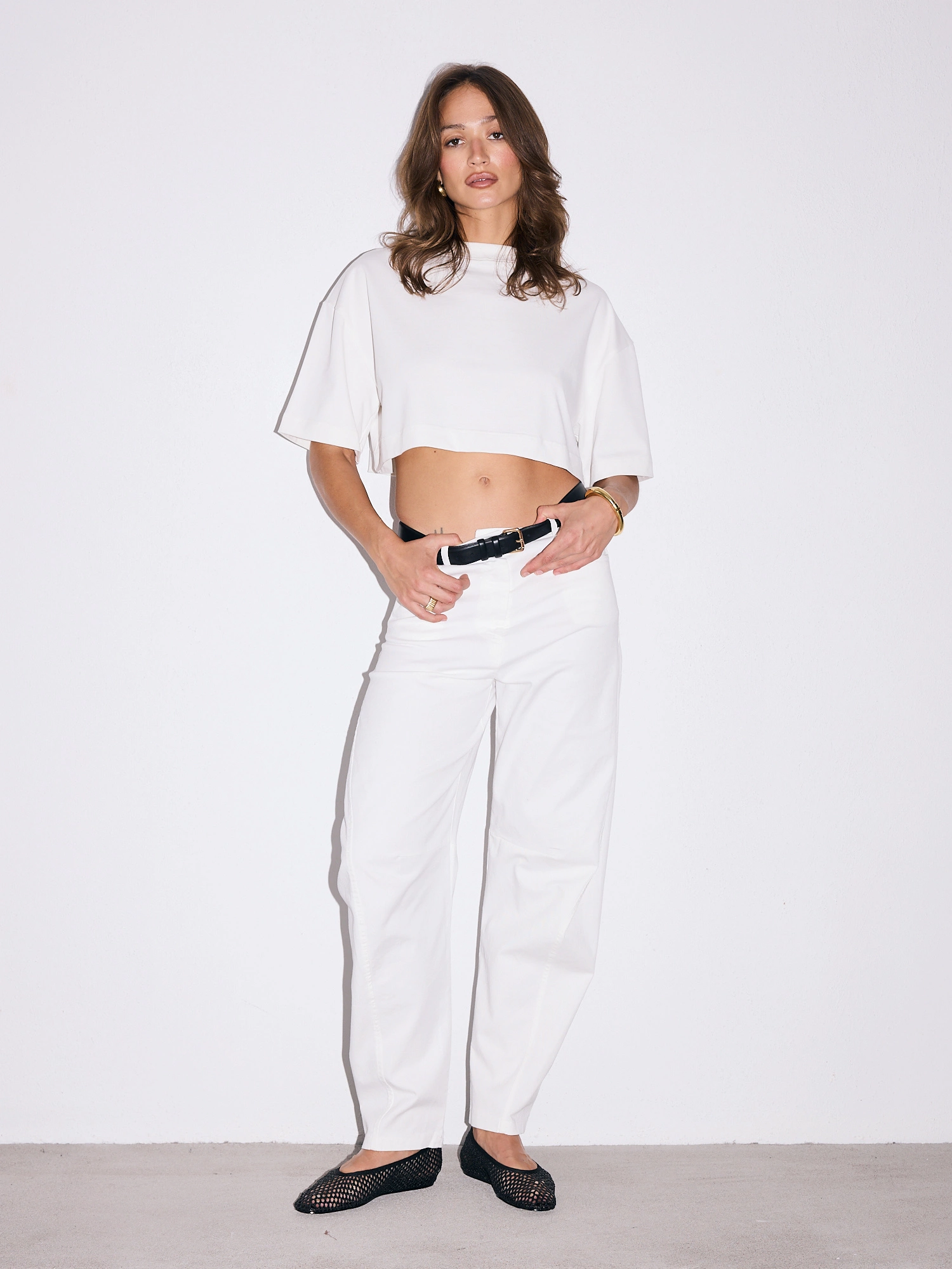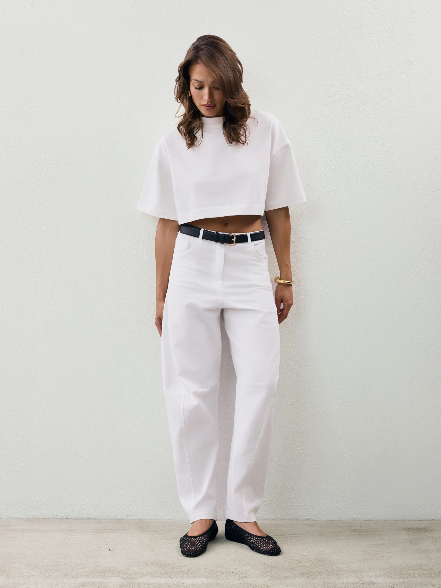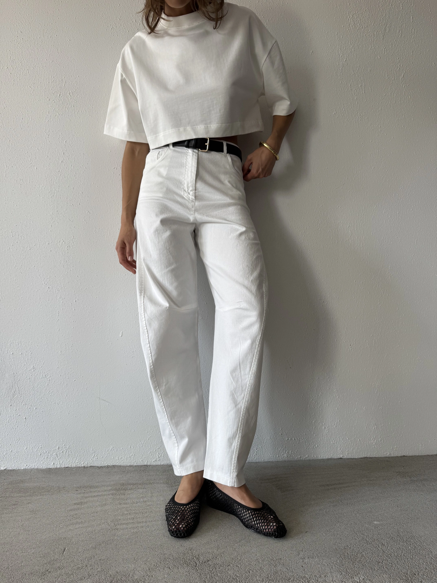 Pants in this season’s trendiest balloon fit—roomier at the thighs and tapered toward the ankles. Made from soft, diagonal-woven cotton in a fresh white shade. Wear them low on the hips or high at the waist—whichever suits your style best. Pair with a fitted top or an oversized T-shirt and a biker jacket. Elevate the look with your favorite sneakers or heels—these pants go with everything and will add a unique touch to any outfit.