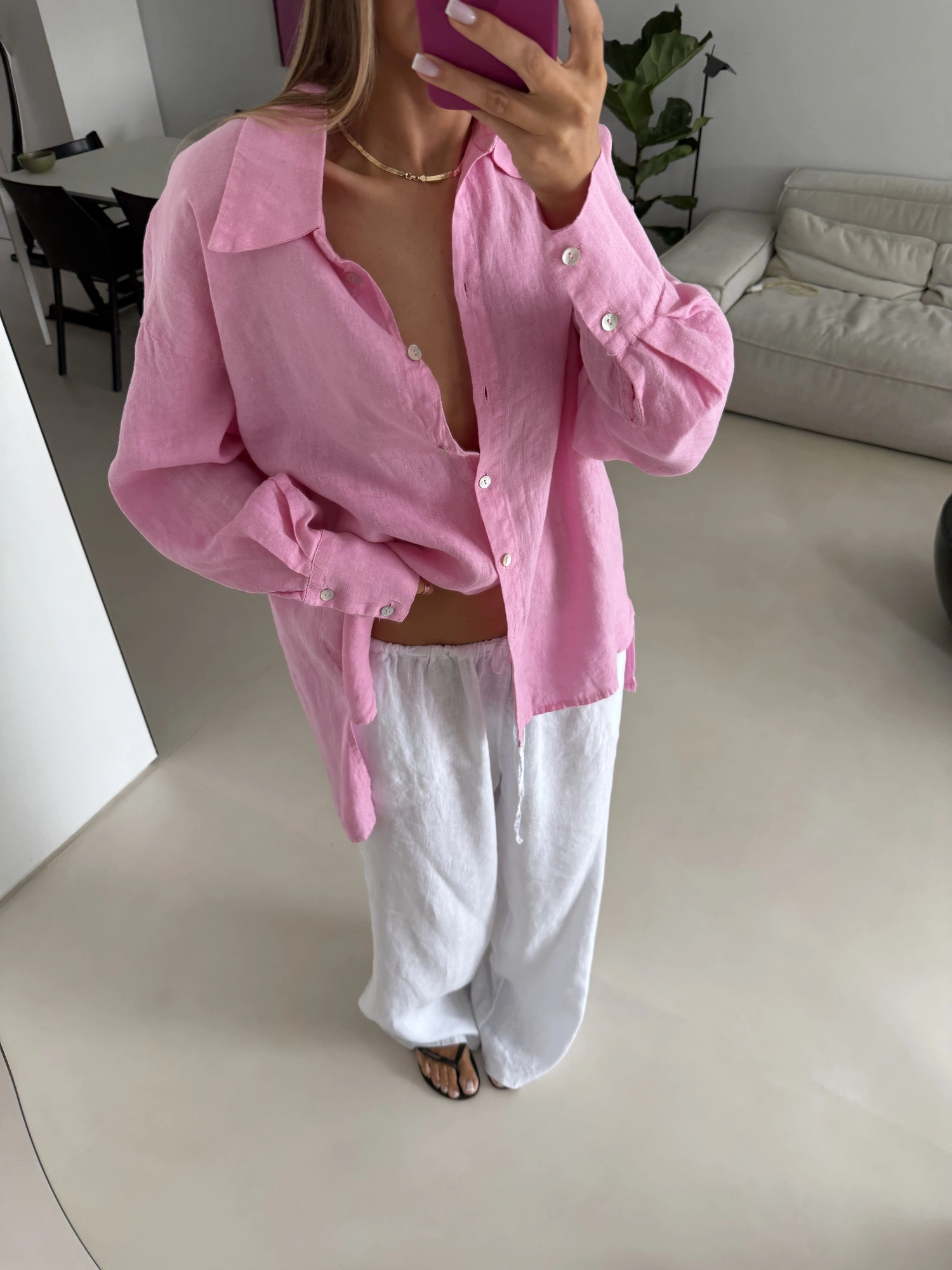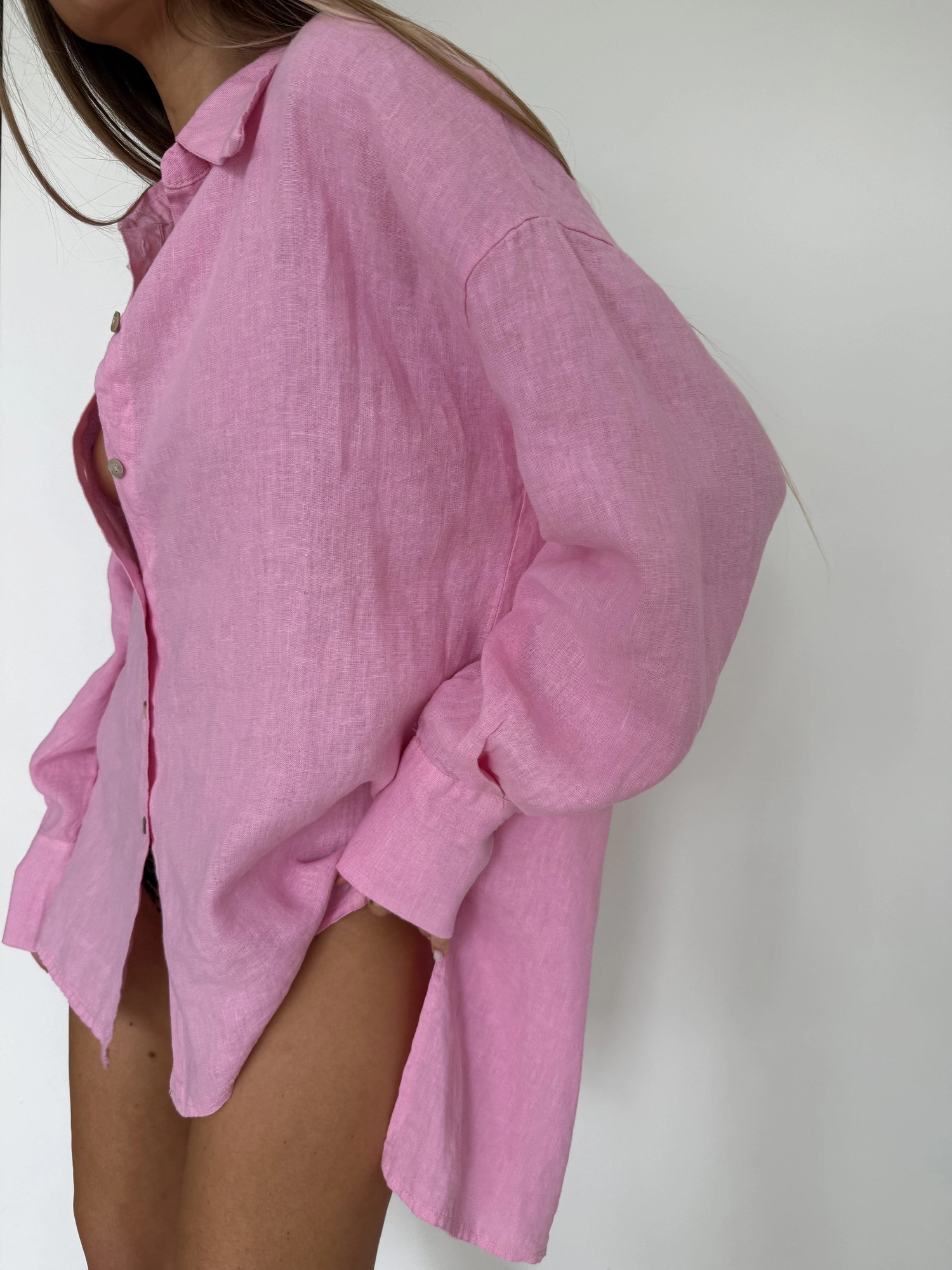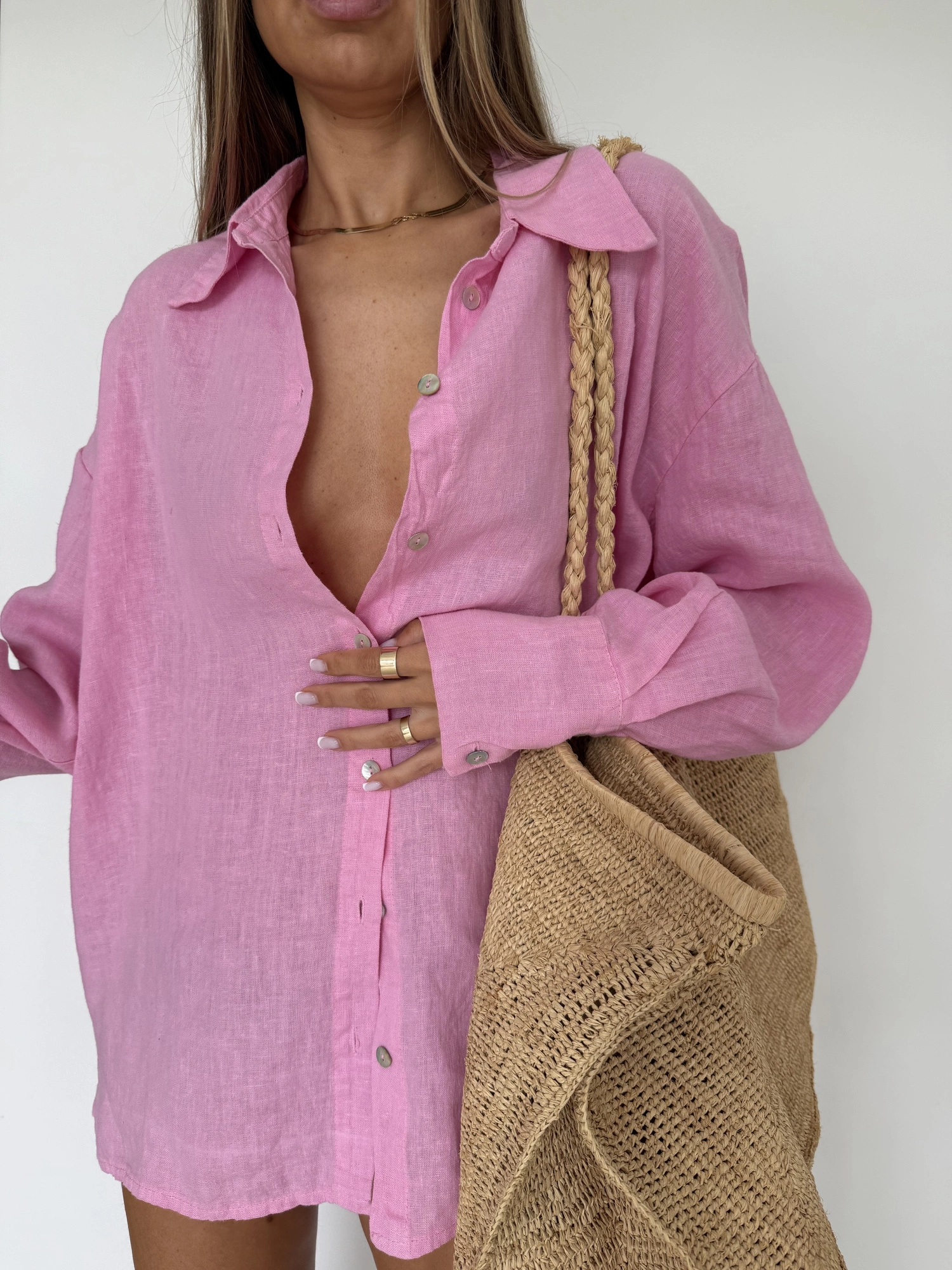 A maxi shirt crafted from soft, ultra-breathable linen. Its elongated cut makes it perfect for both a laid-back city look with shorts or a breezy beach outfit over your swimsuit.