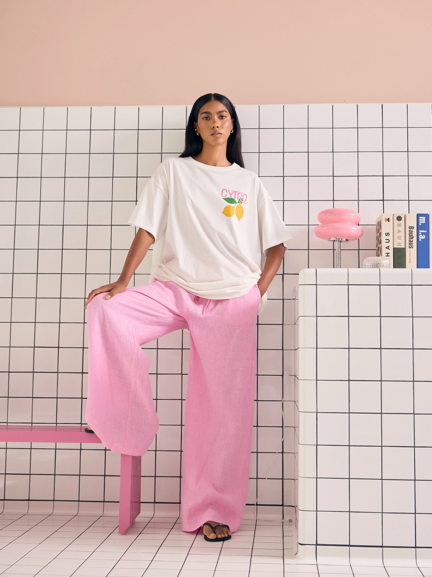 A small front print and a large, colorful lemon graphic on the back give it a fun, summery vibe. Lightweight, comfy, and effortlessly cool – it’s your go-to piece for the season.