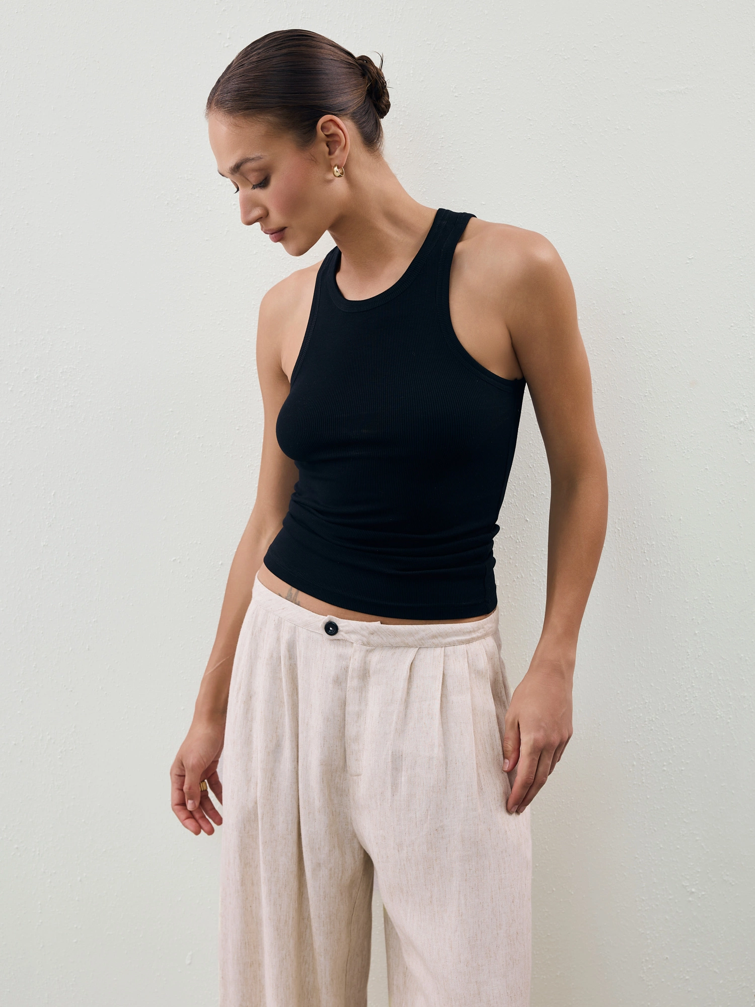 Tank top made from ultra-soft, skin-friendly EcoVero viscose blended with a touch of elastane. The ribbed texture allows the fabric to perfectly hug your figure—it's flexible, breathable, and incredibly comfortable. Wear it in a sporty look with joggers, or dress it up with tailored pants or your favorite jeans. This top is a versatile wardrobe essential you'll reach for time and again, no matter the occasion.