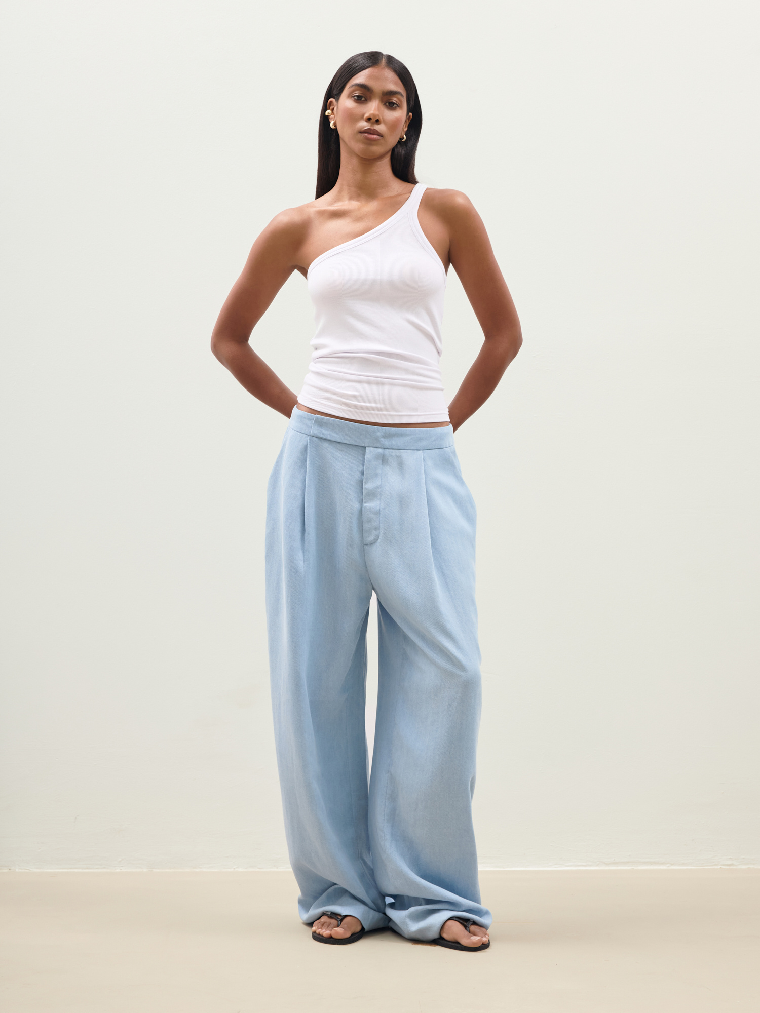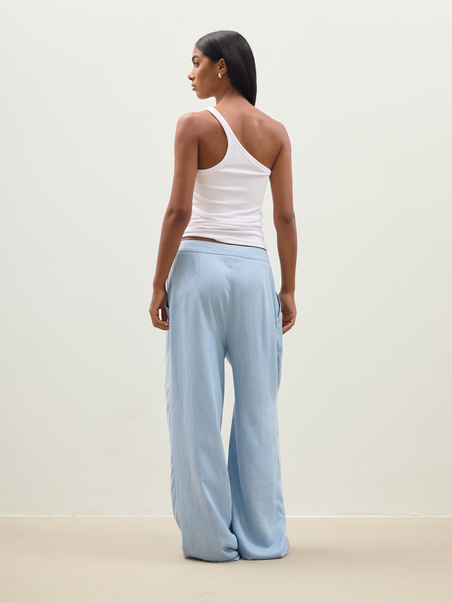 Asymetryczny top wykonany z niezwykle miękkiej i delikatnej dla skóry wiskozy EcoVero z domieszką elastanu. Dzięki prążkowanej strukturze materiał idealnie dostosowuje się do sylwetki, jest wygodny i elastyczny. Noś w wersji sportowej z joggerami lub zestaw z eleganckimi spodniami albo jeansami. Ten top będzie idealną bazą, którą wykorzystasz w wielu stylizacjach niezależnie od okazji.