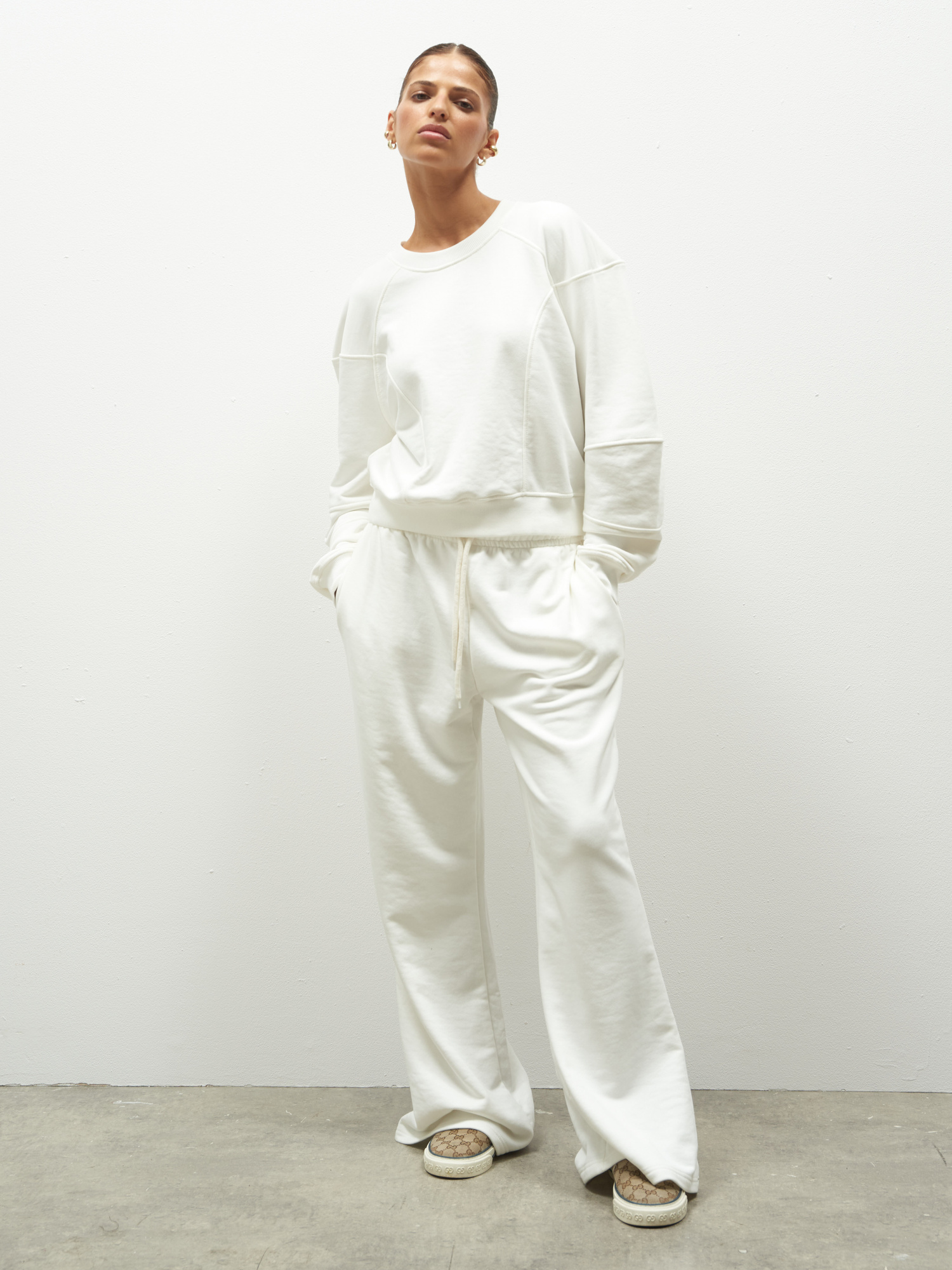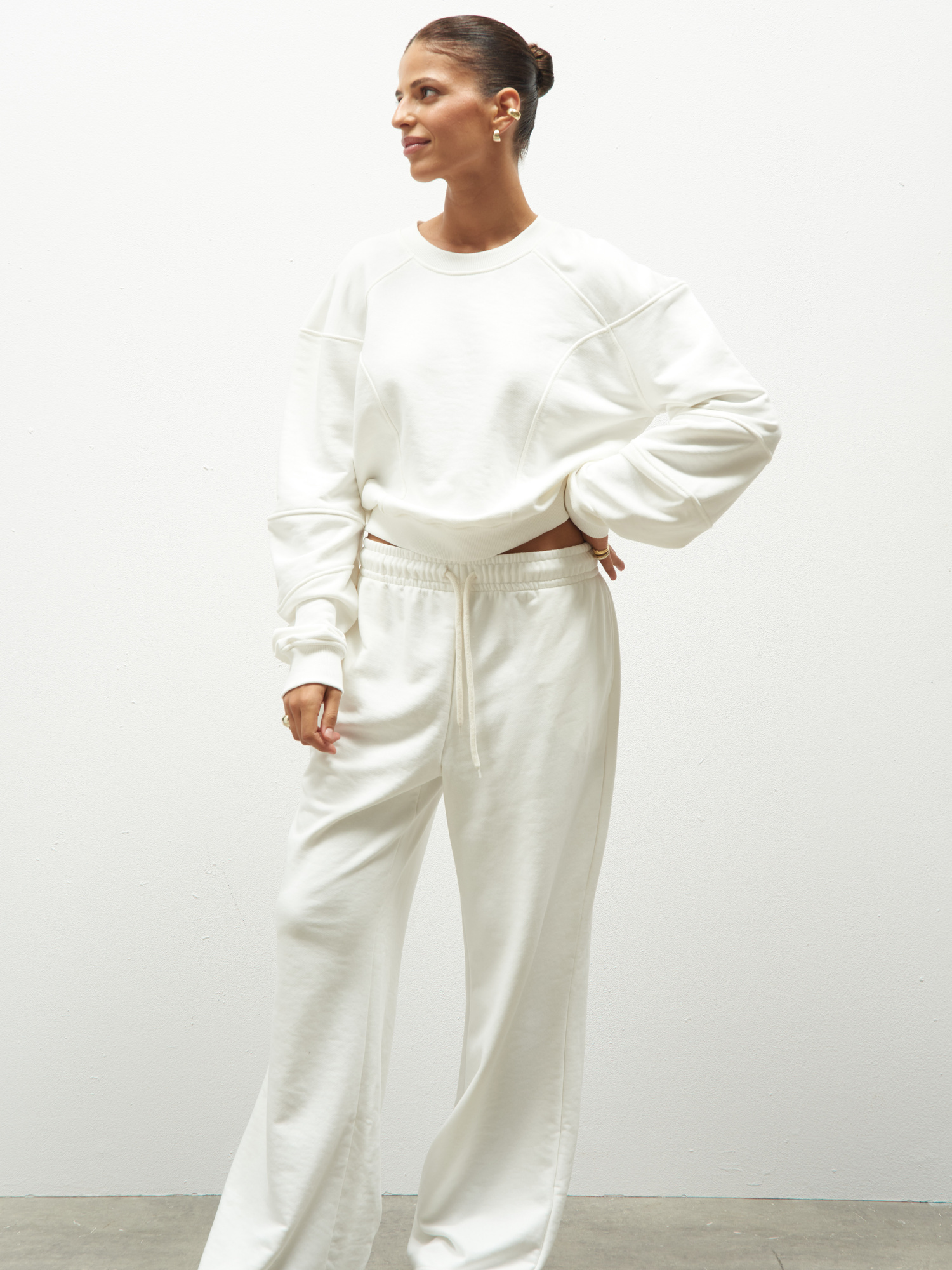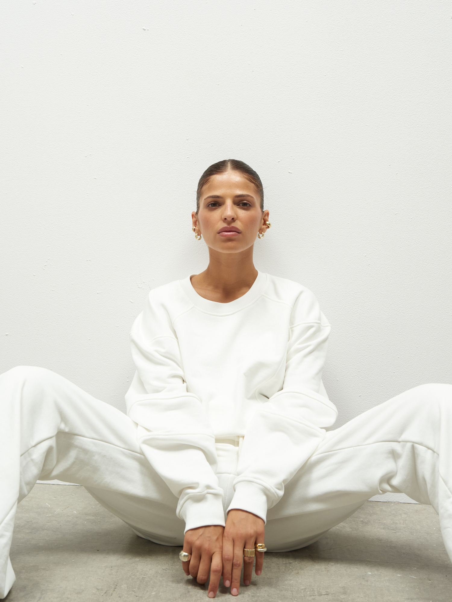 A sweatshirt made from soft, skin-friendly cotton with a looped interior finish. Designed with a classic cut, dropped shoulders, and distinctive stitching that adds character and a unique touch. Paired with the MILO pants, it creates a sporty set with an elevated, minimalist vibe – perfect for everyday wear as well as relaxed weekends.