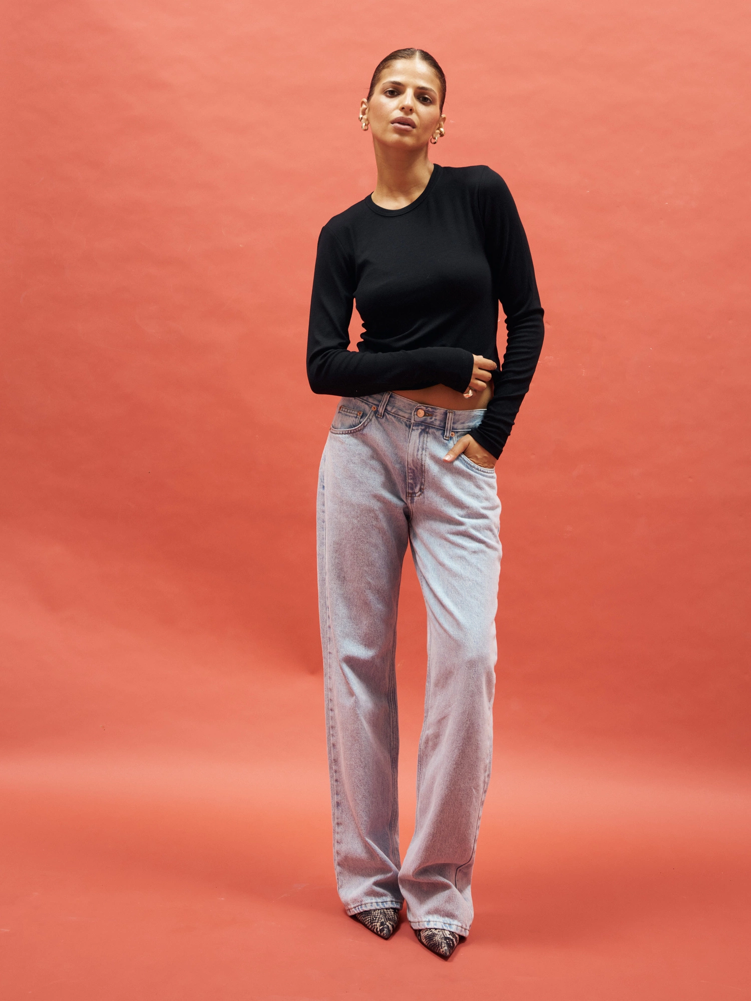 A fitted longsleeve crafted from soft, ribbed cotton. Minimalist and high-necked, featuring signature elongated sleeves. Its ribbed texture makes it incredibly comfortable, easy to wear, and perfectly form-fitting.