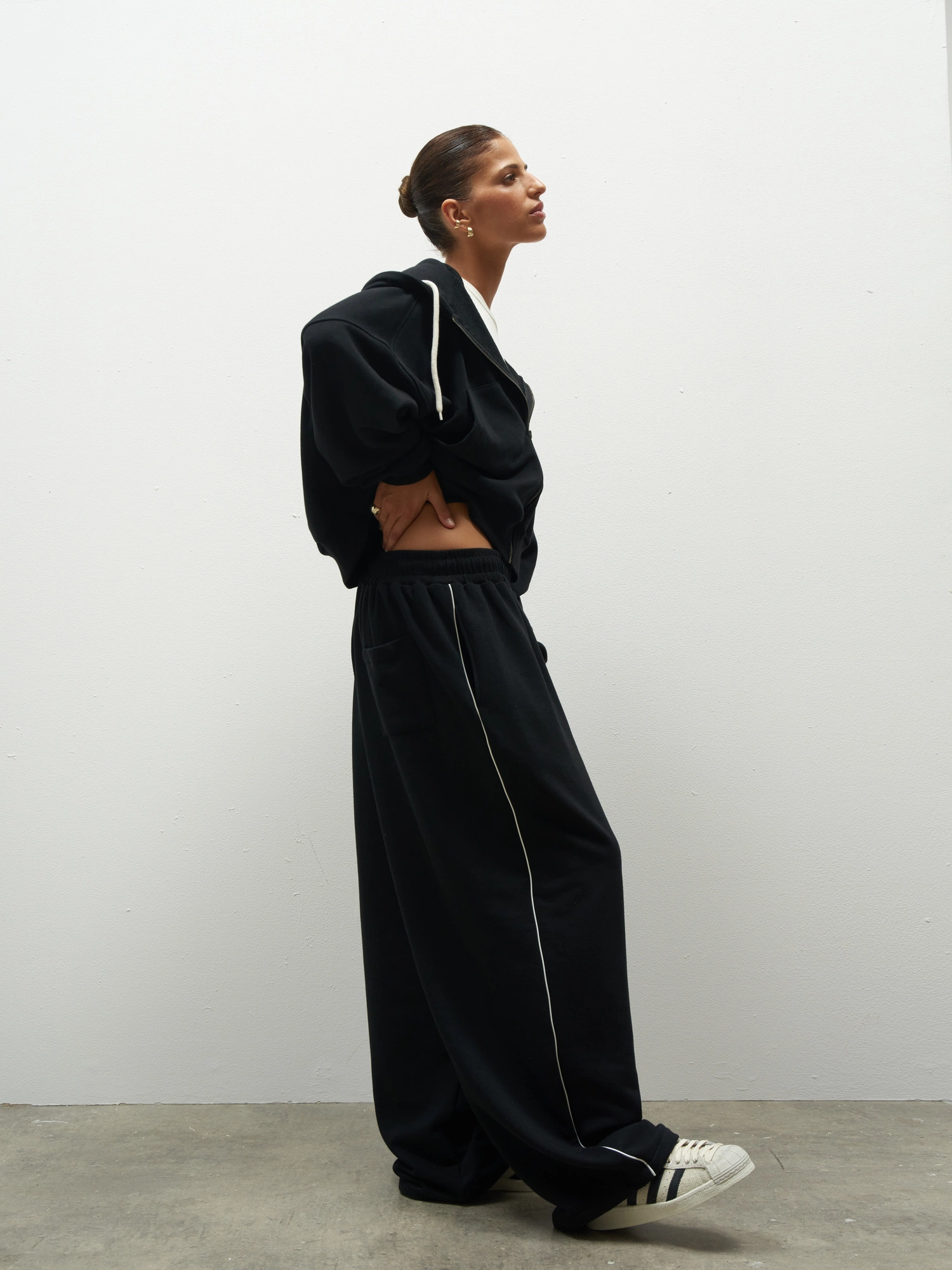 Pair them with the boxy zip-up hoodie or the PADDED crop top and a leather jacket for the perfect start to the new season.