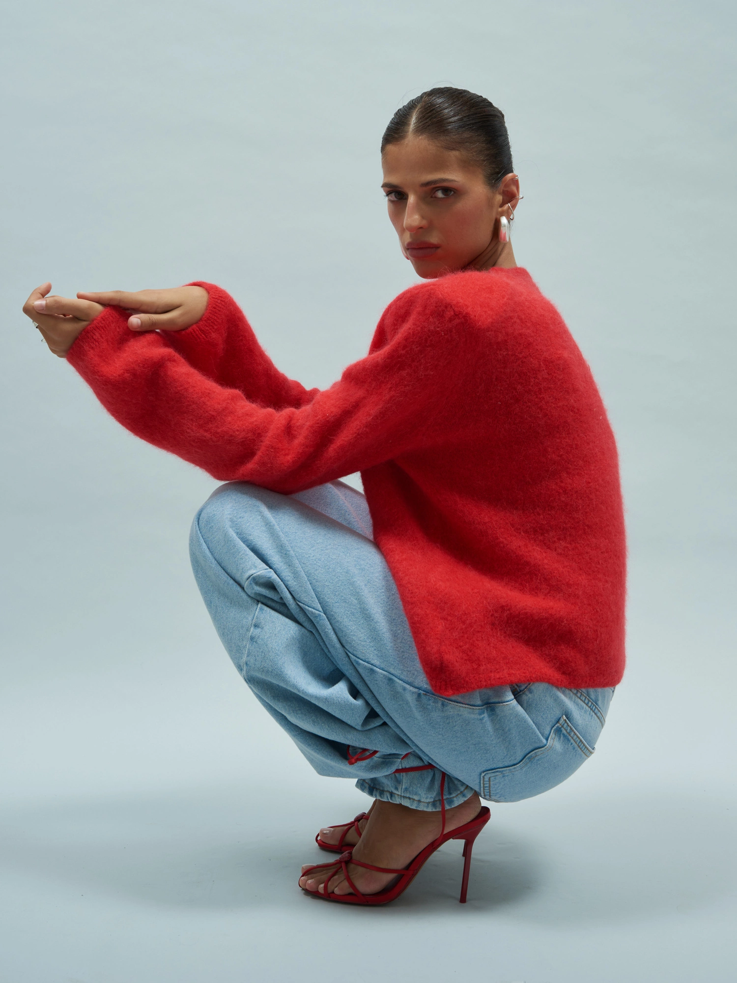 A classic, simple-form sweater with long sleeves, buttoned up to the neck. Thanks to the baby alpaca wool and virgin wool content, it is exceptionally warm, light, and pleasant to the touch. It does not itch, fits beautifully, and keeps you cozy on colder days. Its minimalist, timeless design makes it suitable for both everyday and more elegant outfits. Wear it with your favorite jeans, material pants, or an elegant skirt—it will work in any version.