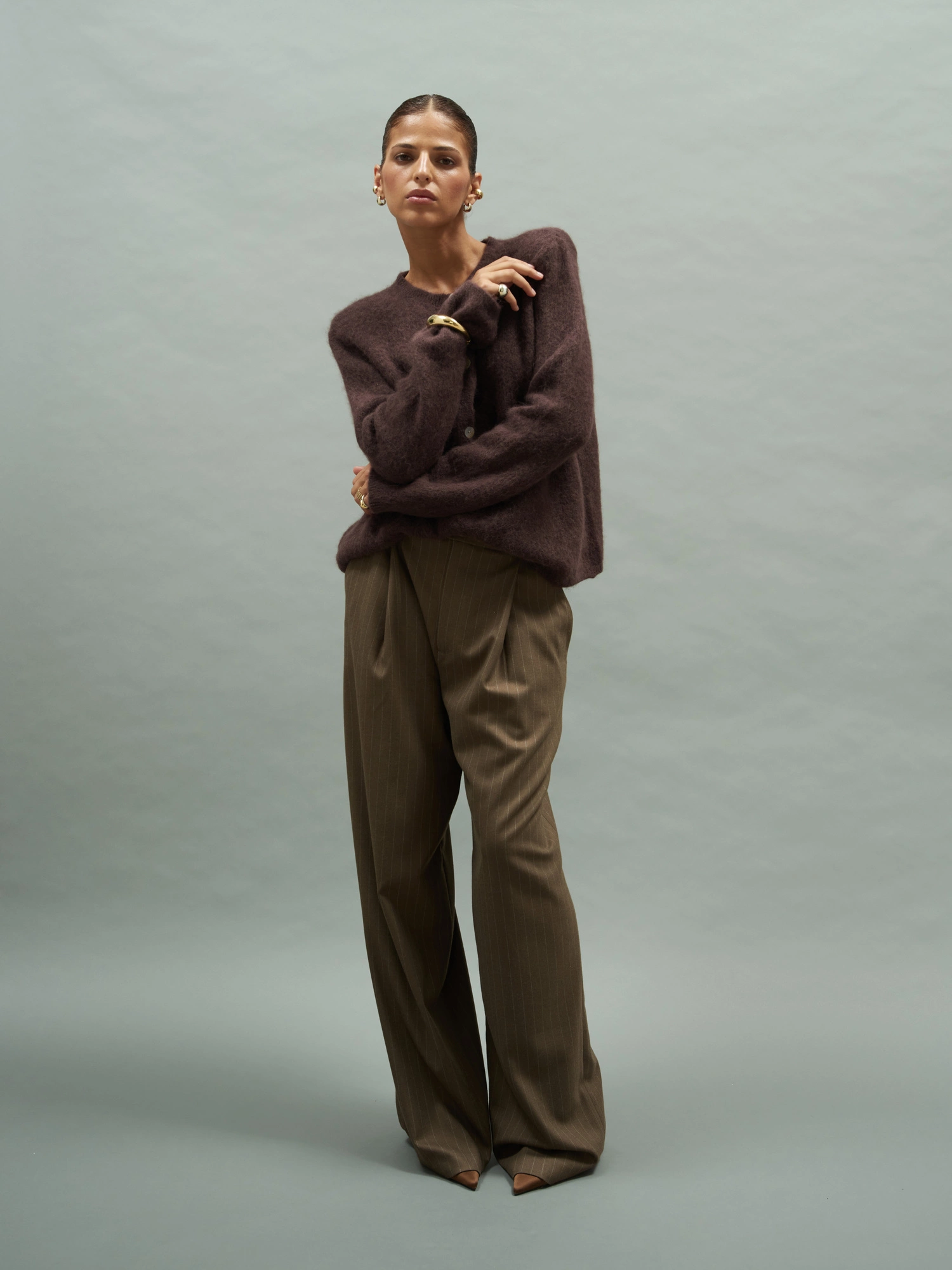 A classic, simple-form sweater with long sleeves, buttoned up to the neck. Thanks to the baby alpaca wool and virgin wool content, it is exceptionally warm, light, and pleasant to the touch. It does not itch, fits beautifully, and keeps you cozy on colder days. Its minimalist, timeless design makes it suitable for both everyday and more elegant outfits. Wear it with your favorite jeans, material pants, or an elegant skirt—it will work in any version.