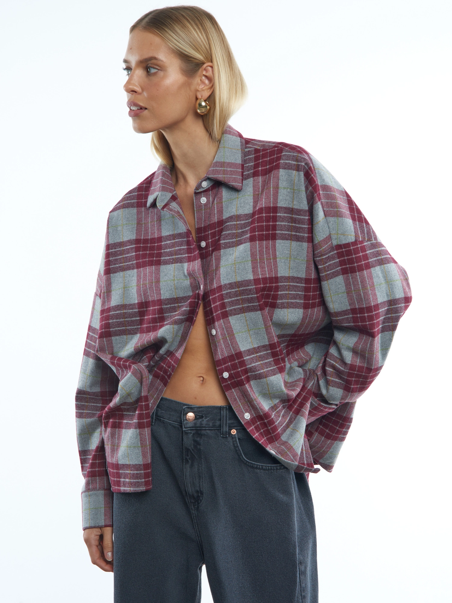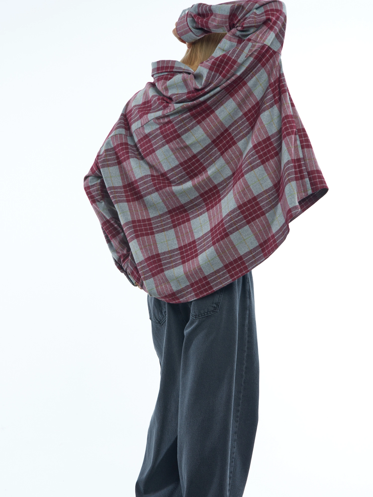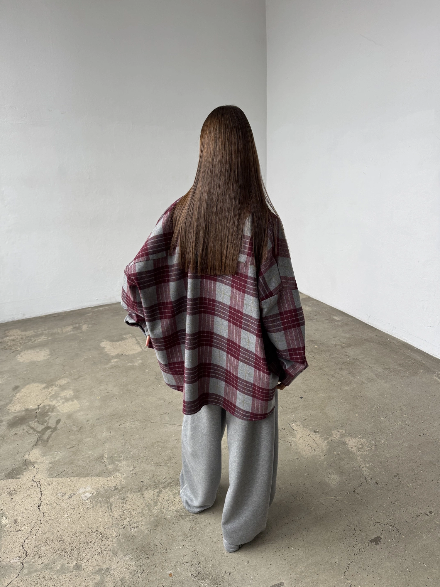 An oversized shirt made of soft fabric with a signature checkered print. Designed in the style of a worker shirt, it is large, roomy, and styled to look masculine. It has a classic collar and wide cuffs at the sleeves. Wear it with your favorite jeans, throw it over a top and leggings, or tie it loosely at the waist to spice up your tracksuit look - all tricks are allowed.