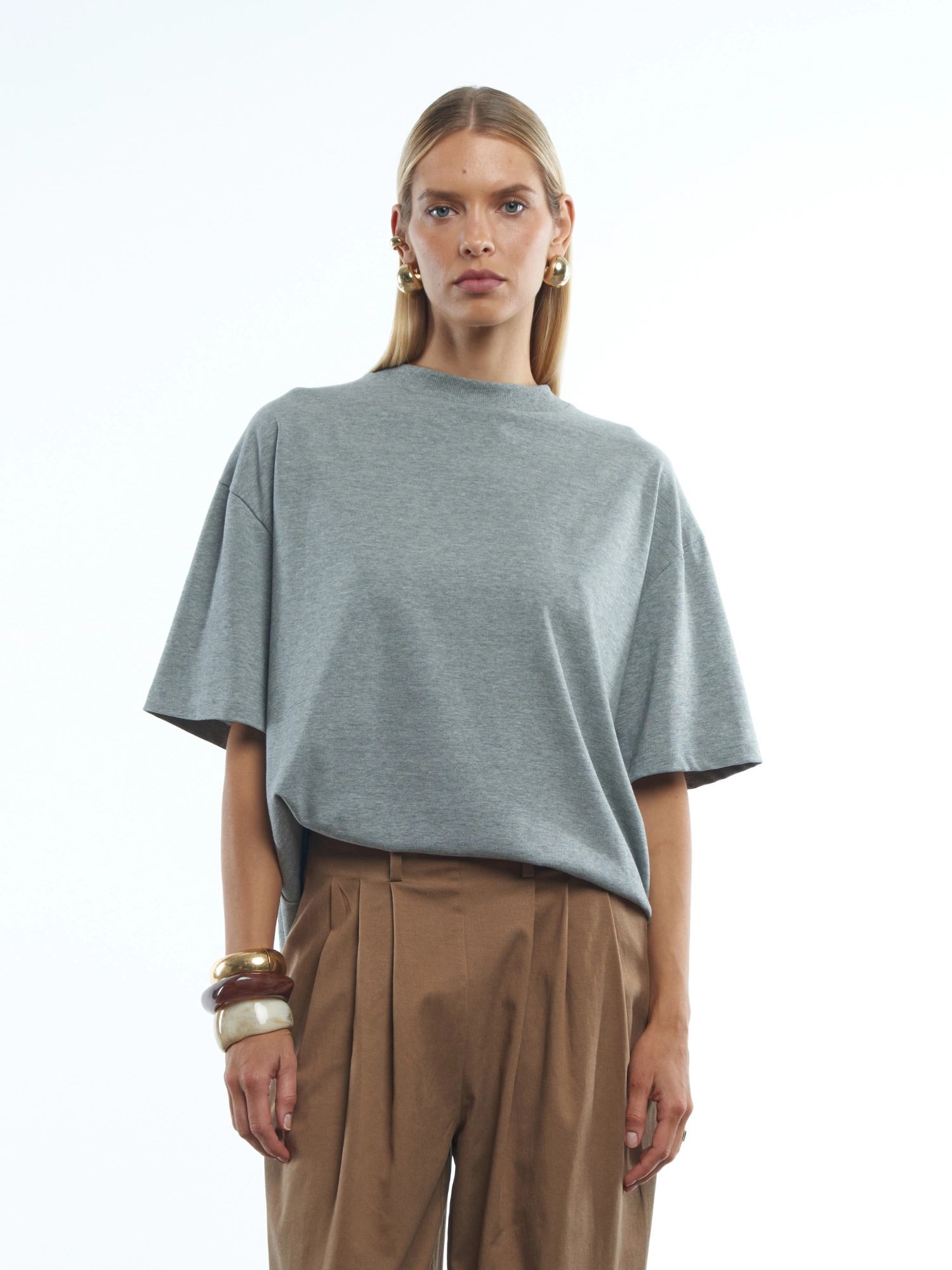 An oversized T-shirt made of soft cotton that feels great on your skin. Its loose, relaxed fit makes it look perfect on any body shape. Minimalist yet distinctive, it's perfect as a base for everyday and more refined outfits with jeans or elegant fabric pants.
