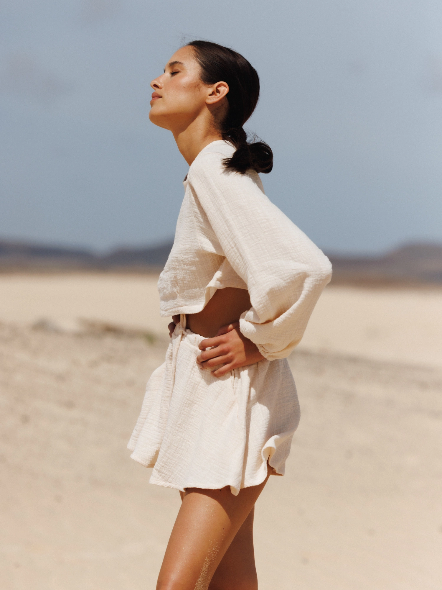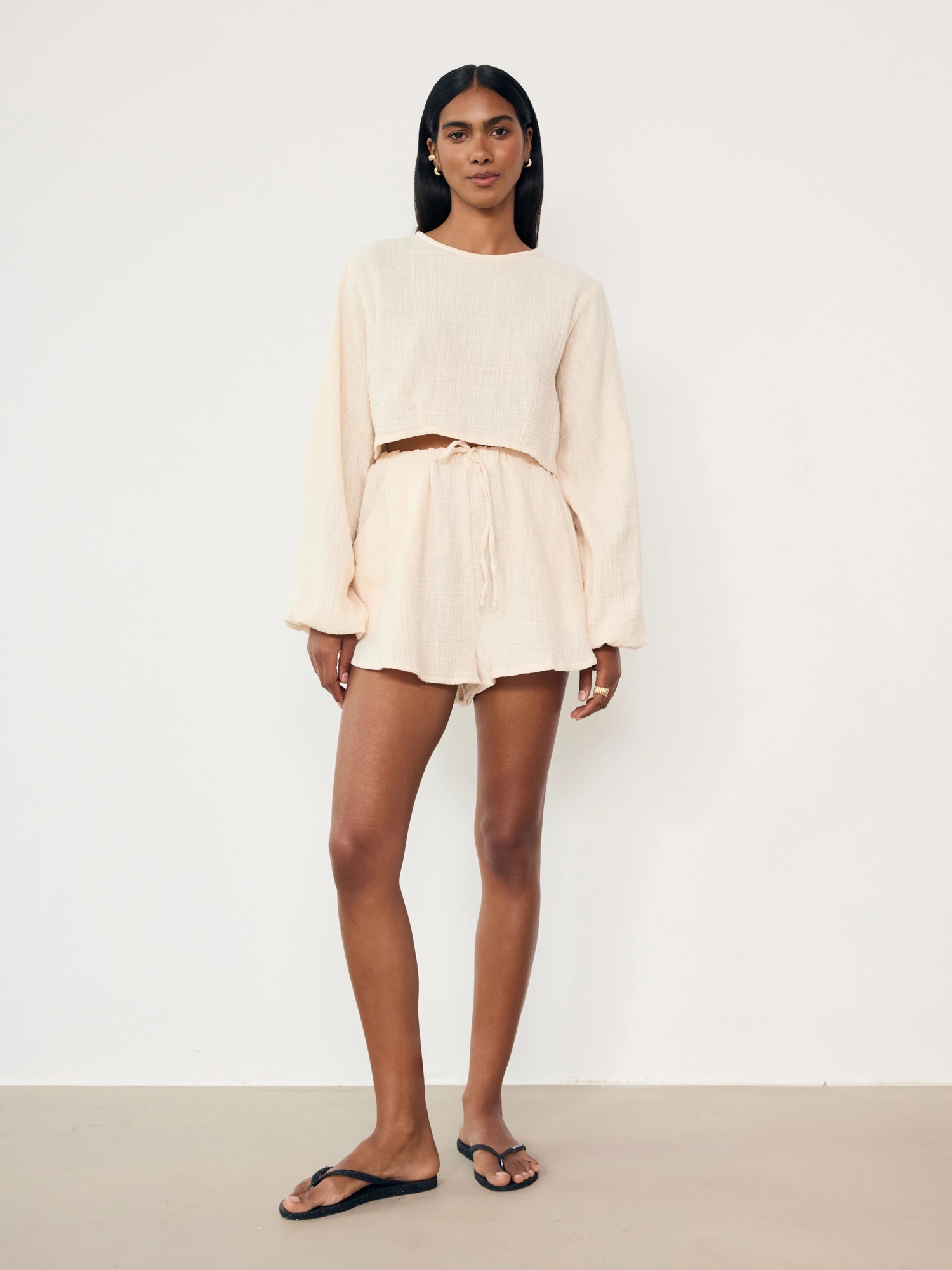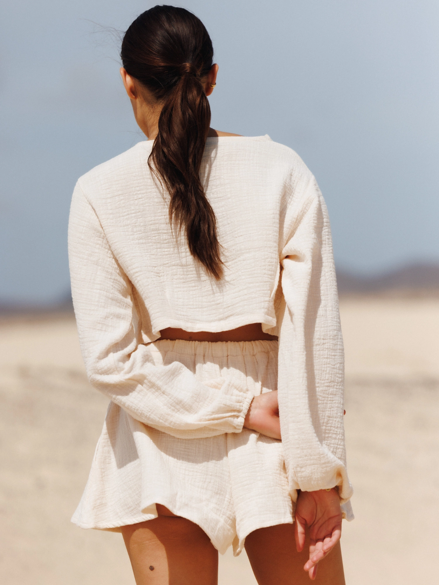 TOP PLAYA BISCUIT to lekka bluzka wykonana z muślinu bawełnianego. Ma długie, szerokie rękawy zakończone gumką przy mankietach. Jest krótka, z charakterystycznymi przeszyciami pod biustem, które nadają całości wyjątkowego kształtu. Załóż do niej SZORTY RAYA i stwórz zestaw idealny na plaże, wakacje i lato - nawet to w mieście ;)