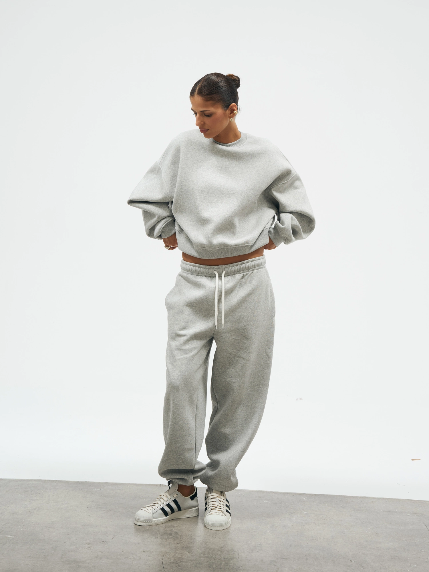 Joggery oversize wykonane z ultra miękkiej bawełny. W pasie wygodna guma z dodatkowym wiązaniem, dzięki czemu możesz nosić je tak jak lubisz najbardziej - wysoko w talii albo nisko na biodrach. Szerokie, wygodne nogawki z wąskim ściągaczem a po bokach kieszenie. Wnętrze wykończone ciepłym misiem. Połącz z BLUZĄ lub z LONGSLEEVEM i stwórz klasyczny, sportowy zestaw, idealny na rozpoczęcie nowego sezonu.