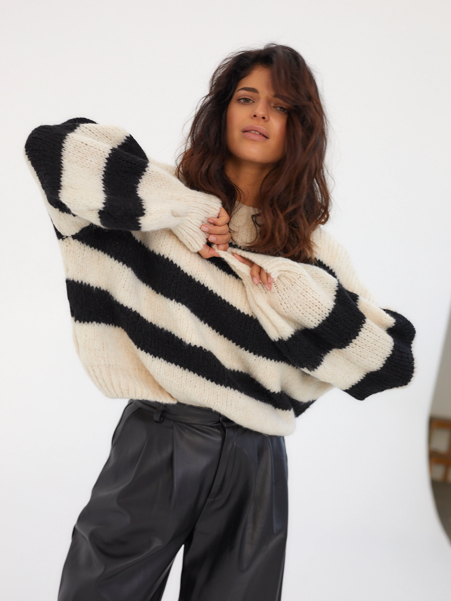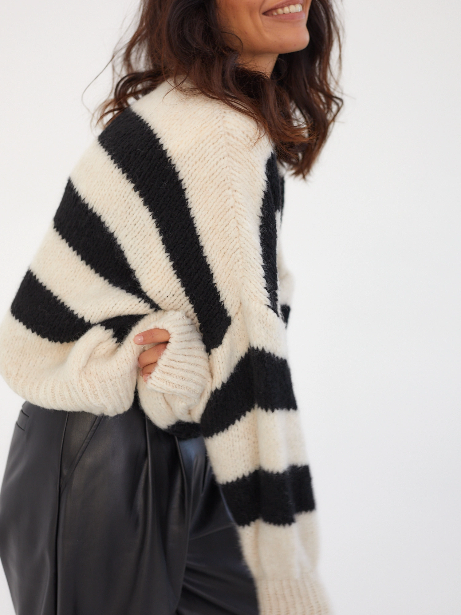 Bestsellerowy sweter wykonany z miękkiej przędzy z dodatkiem wełny i puszystego moheru. Fason oversize z bufiastymi rękawami zakończonymi szerokim ściągaczem. Jest ciepły, przyjemny dla skóry i nie gryzie! Zestaw z jeansami, materiałowymi spodniami lub spódnicą i przygotuj swoją garderobę na nowy sezon.