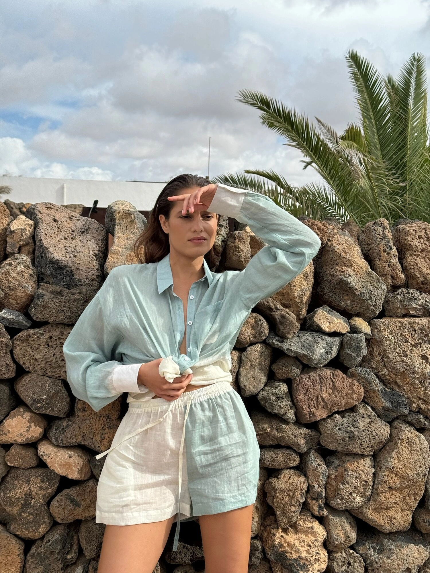 Krótkie szorty wykonane z cienkiej ramii z charakterystycznym cieniowanym efektem i delikatnie transparentną strukturą. Ramia jest niezwykle przewiewna, przyjemna w noszeniu, a do tego chłodna w dotyku. To materiał, który będzie doskonałym wyborem dla osób o wrażliwej i delikatnej skórze, bowiem jest odporna na bakterie, grzyby czy pleśń. Szorty mają wygodną gumę w pasie z dodatkowym wiązaniem i dwie poręczne kieszenie. Są częścią zestawu i razem z KOSZULĄ MARE tworzą wyjątkowy letni look, który sportową elegancję wnosi na zupełnie inny level.