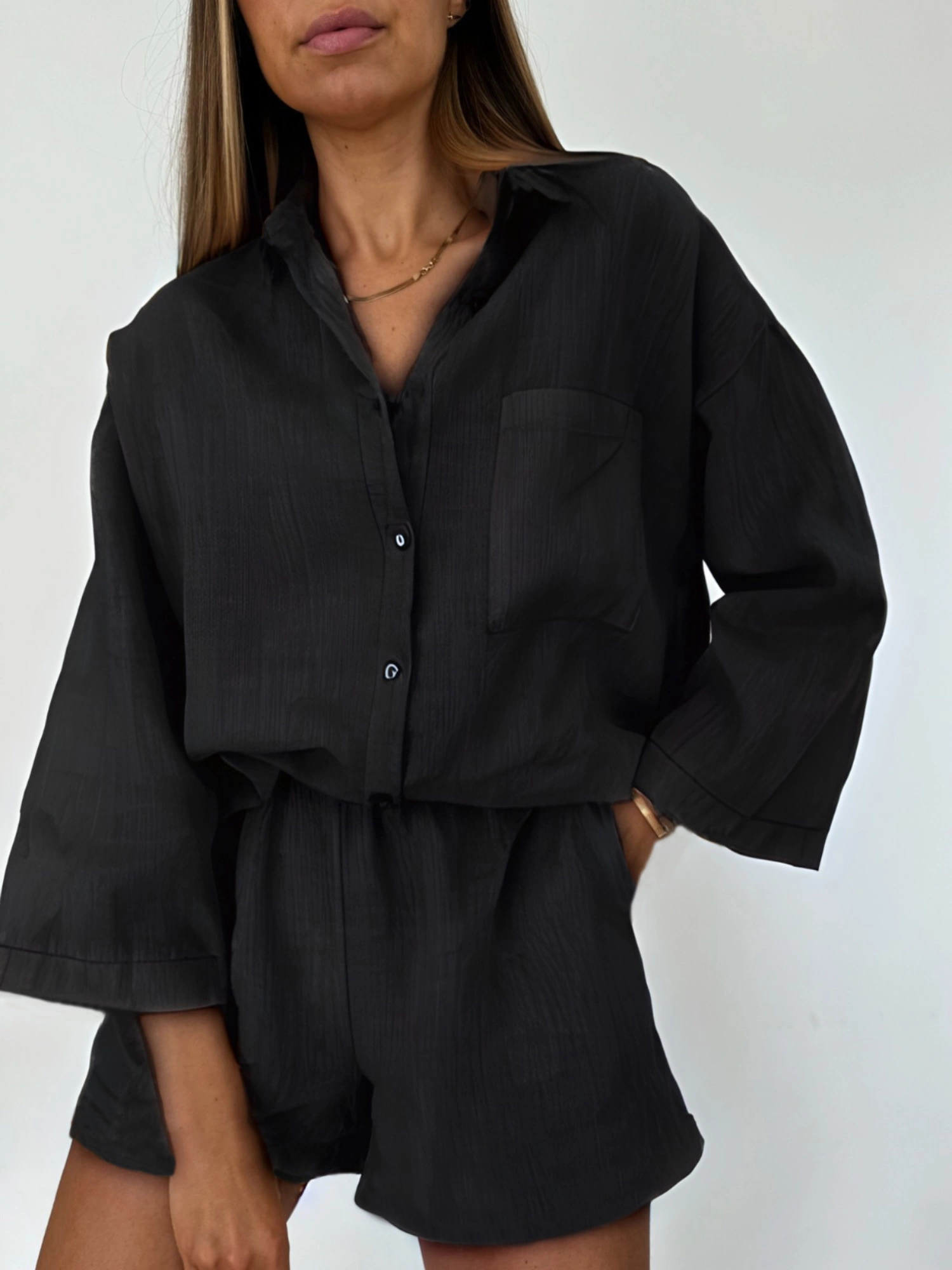 Pssst... Między koszulą, a szortami możliwa jest delikatna różnica w odcieniu - wynika to z naturalnych właściwości lnu i procesu barwienia. Pozostaje jednak niezauważalna w codziennym użytkowaniu.