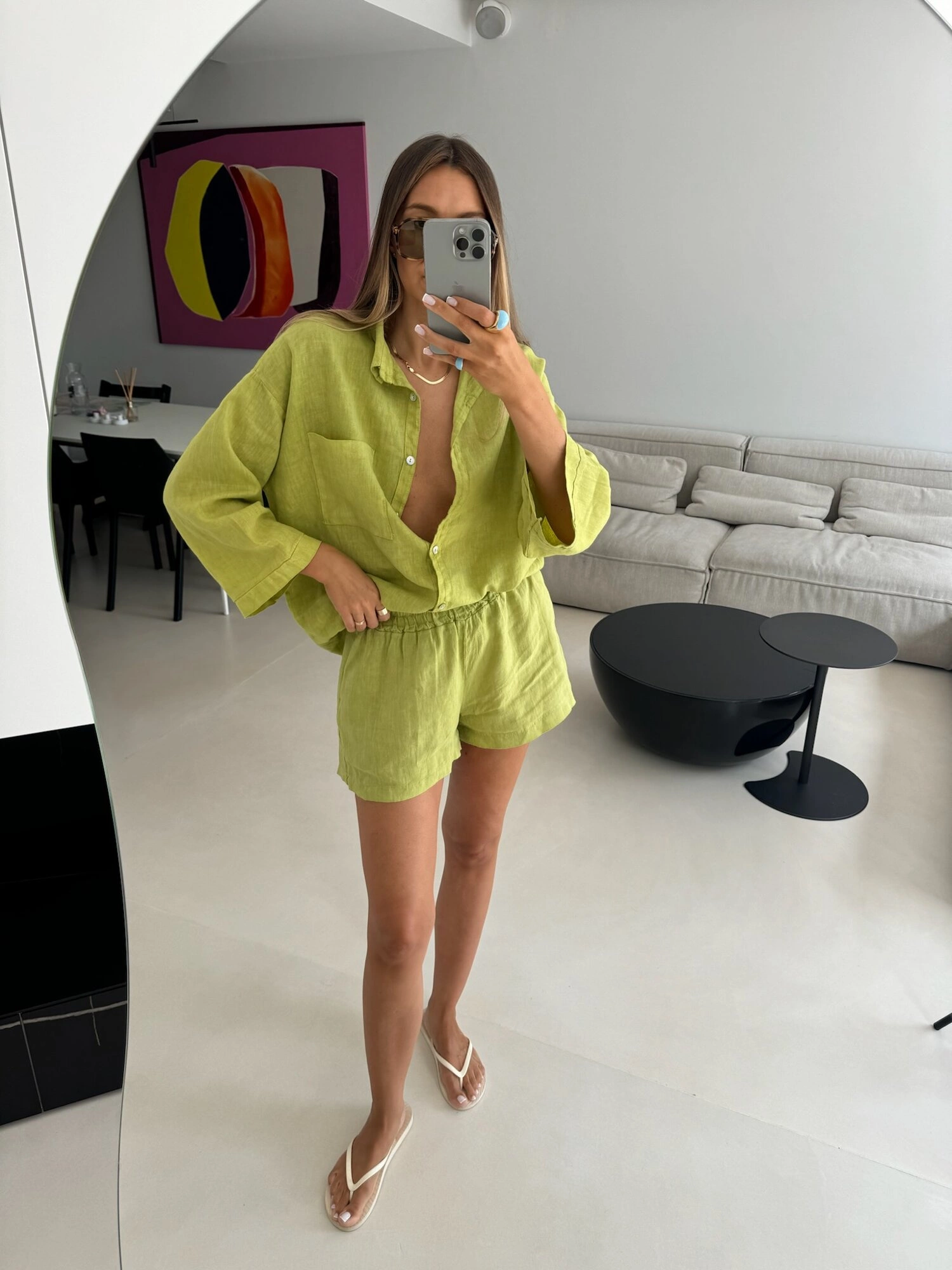 Pssst... Między koszulą, a szortami możliwa jest delikatna różnica w odcieniu - wynika to z naturalnych właściwości lnu i procesu barwienia. Pozostaje jednak niezauważalna w codziennym użytkowaniu.