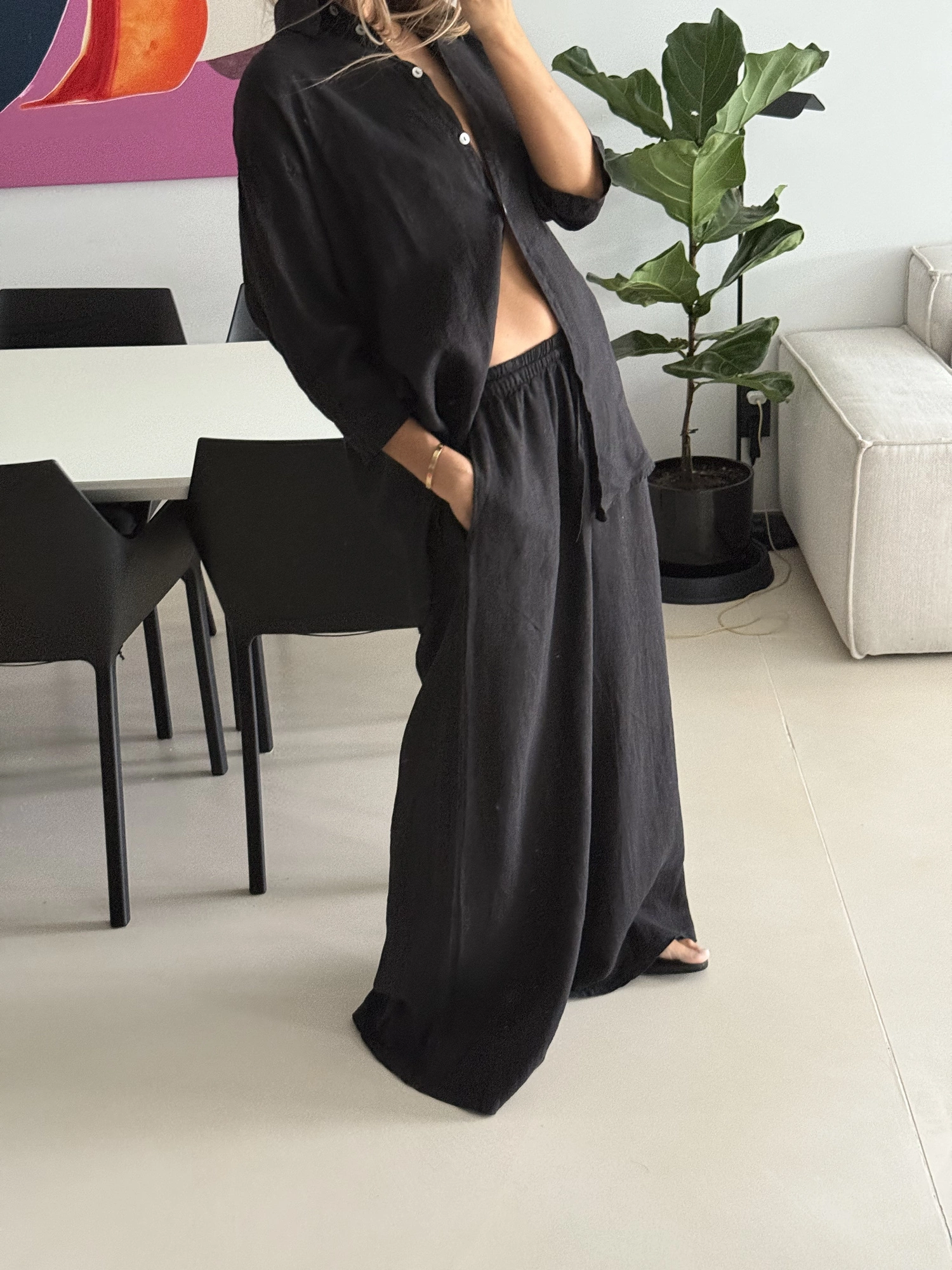 Pssst... Między koszulą, a szortami możliwa jest delikatna różnica w odcieniu - wynika to z naturalnych właściwości lnu i procesu barwienia. Pozostaje jednak niezauważalna w codziennym użytkowaniu.