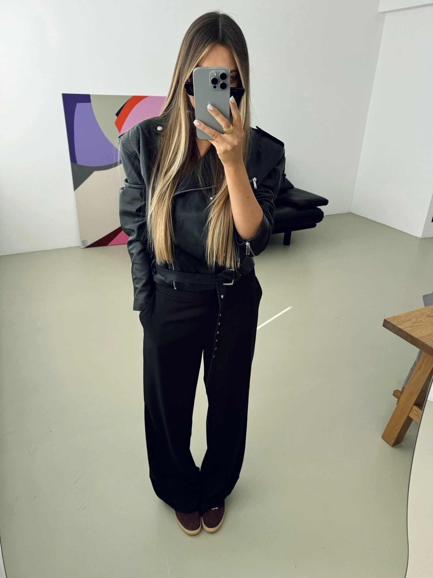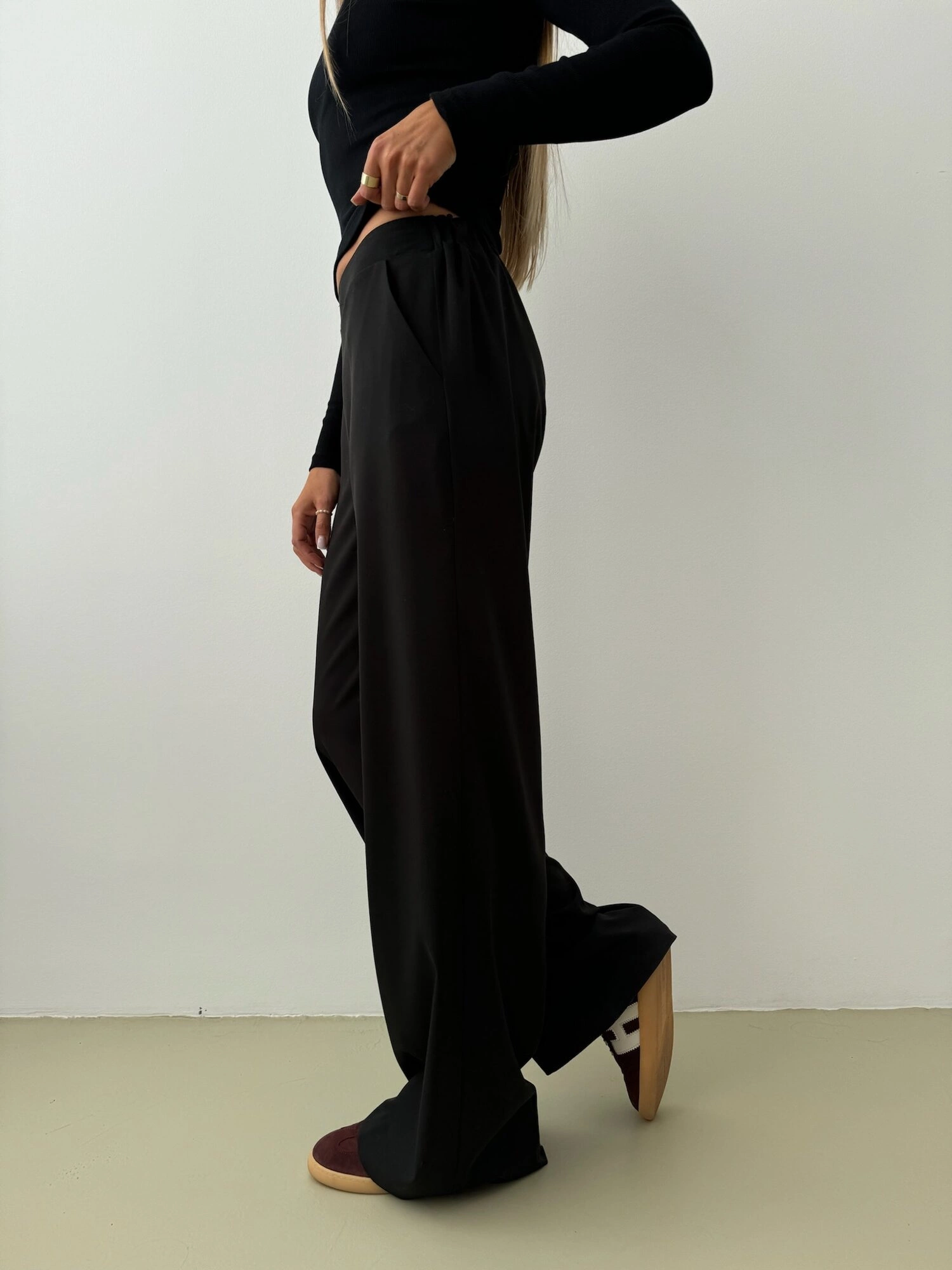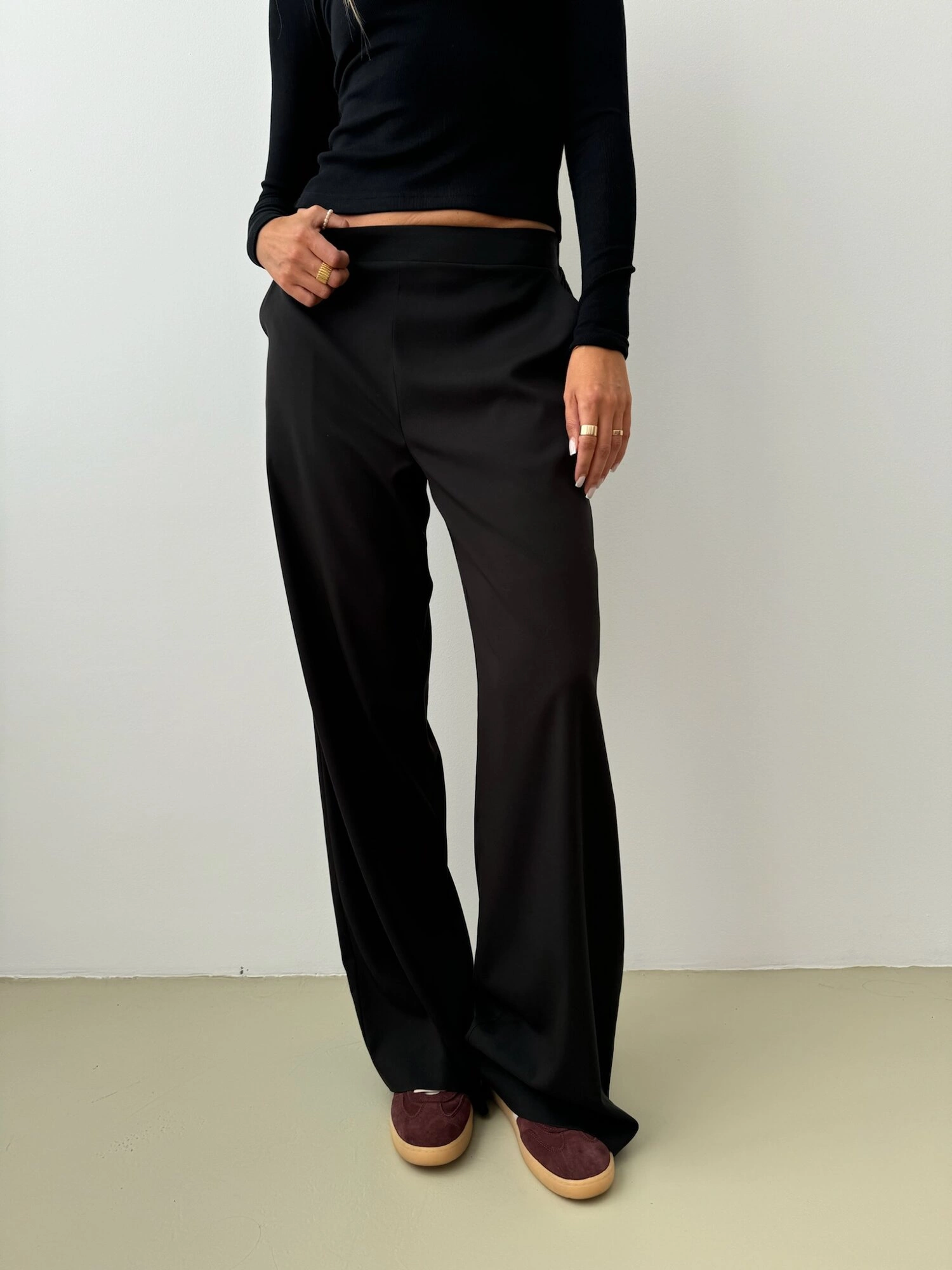 Minimalistyczne spodnie wykonane z miękkiego tencelu. Mają prosty fason i nogawki, a pas na tyle wzbogacony elastyczną gumką. Materiał jest przewiewny, lejący i pięknie się układa. Ten fason to idealne połączenie elegancji i sportowego luzu i z pewnością wykorzystasz je do wielu, ponadczasowych stylizacji. Na co dzień ze sneakersami i bluzą, do pracy z botkami i elegancką koszulą, a na imprezę z dopasowanym topem i marynarką - możliwości jest wiele!