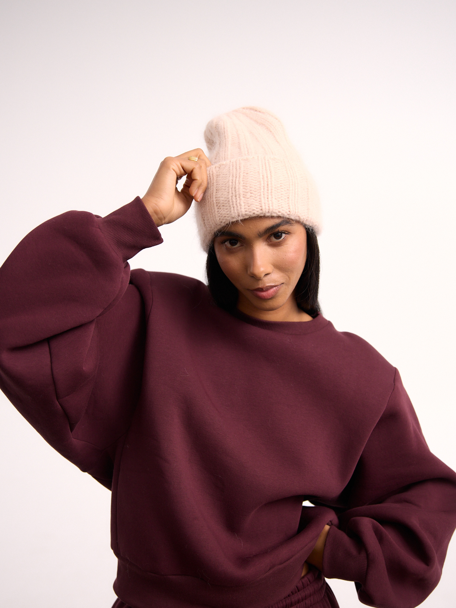 Czapka beanie wykonana z miękkiej dzianiny z angorą. Materiał jest puszysty, delikatny i nie gryzie. Ma klasycznie wywijany brzeg i charakterystyczny splot. Nie daj się nagłym spadkom temperatury, Frost zapewni Ci dużo ciepła i będzie ponadczasowym dodatkiem do każdej z Twoich jesienno-zimowych stylizacji.