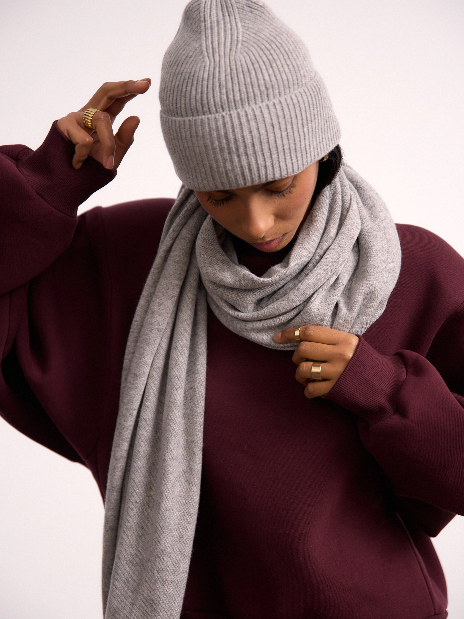 Czapka beanie wykonana z niezwykle miękkiej i niegryzącej dzianiny z kaszmirem i wełną (po 50%!). Ma ponadczasowy kształt z klasycznie wywijanym brzegiem, a w połączeniu z SZALIKIEM stworzy zestaw, który zapewni Ci ciepło w chłodniejsze dni. To fantastyczny dodatek, który podkręci każdą z jesienno-zimowych stylizacji, a dwa uniwersalne kolory będą pasować do wszystkiego.