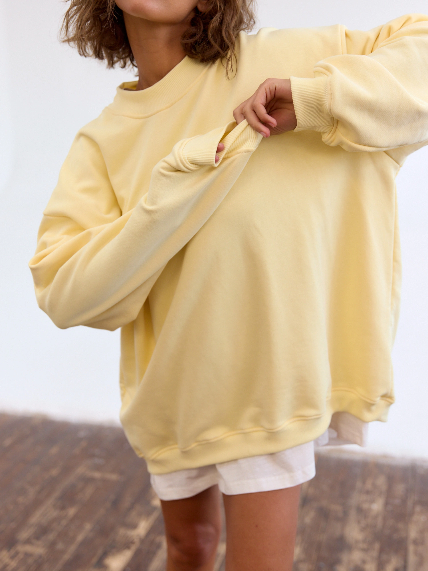 Kolejna odsłona kolorystyczna naszej bluzy o przedłużonym kroju. Fason oversize z długimi rękawami w połączeniu z miękką bawełną i wykończeniem NA PĘTELCE jest gwarancją komfortu i oryginalnego looku. Będzie dla Ciebie ucieczką w wygodę przez cały rok. Noś z jeansami, szortami, materiałowymi spodniami albo solo. Pamiętaj też, że nasze duże bluzy wyglądają świetnie z T-SHIRTEM BOYFRIEND.