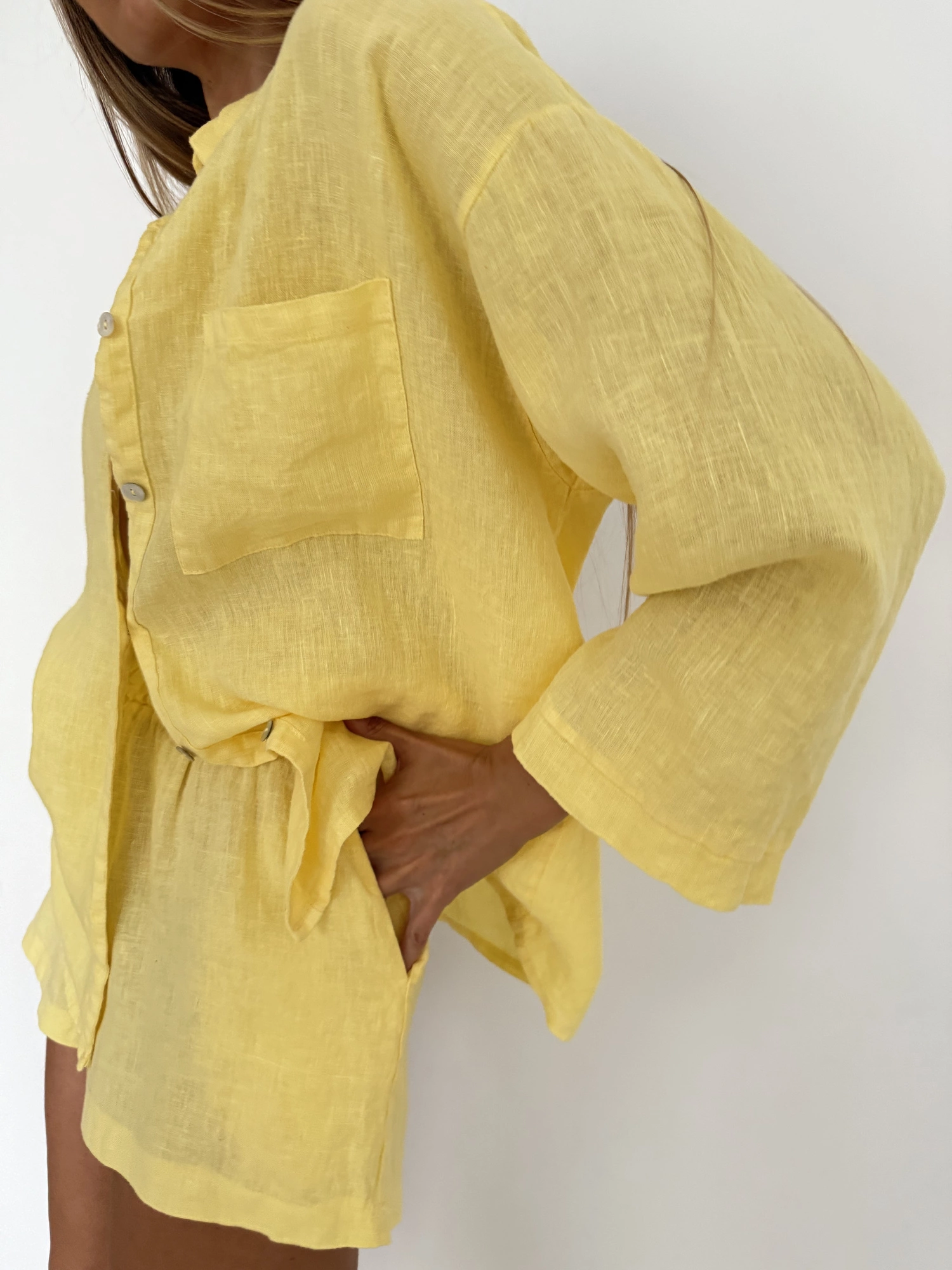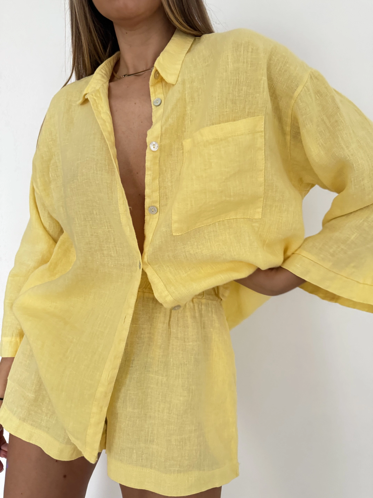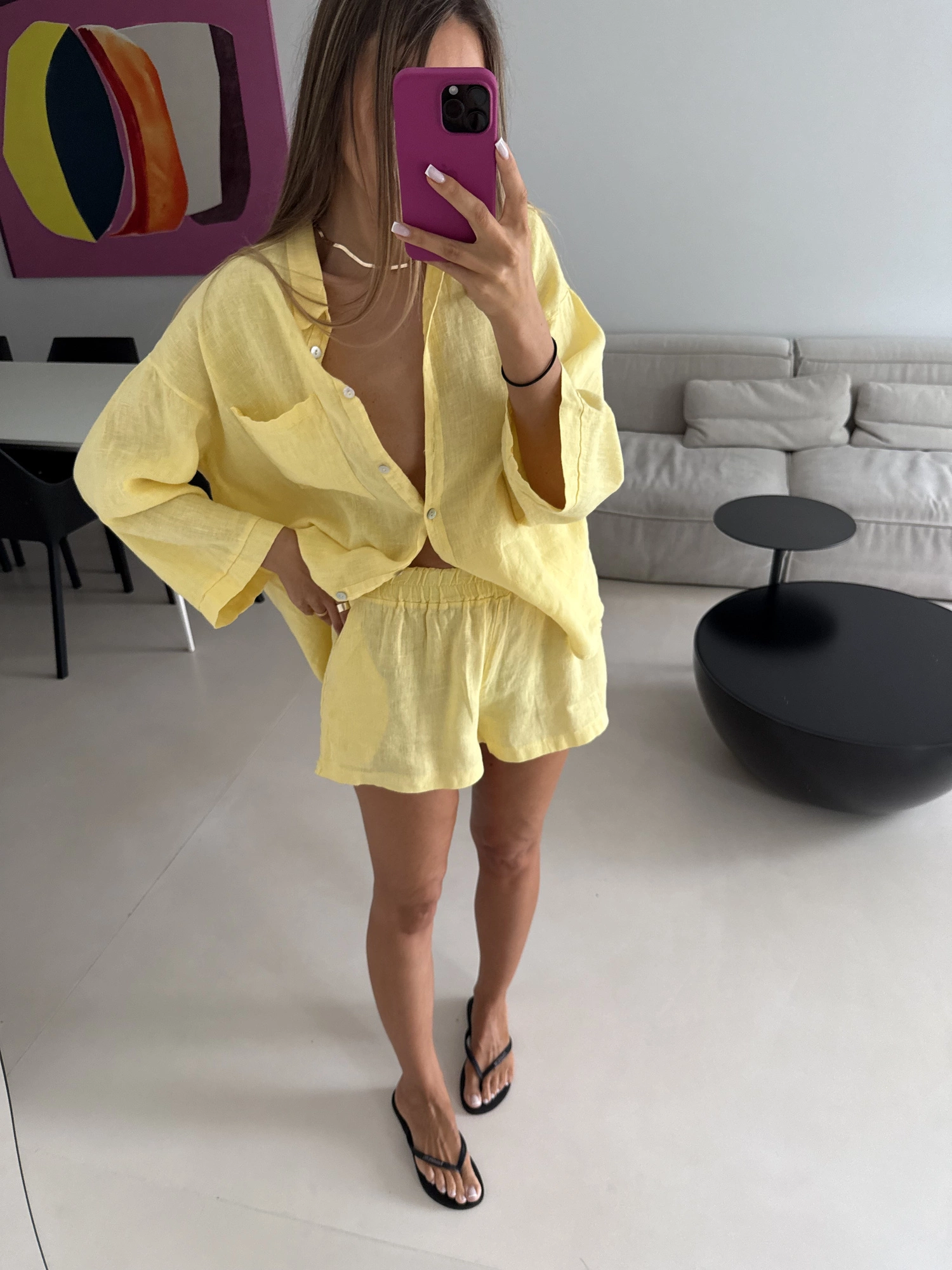 Pssst... Między koszulą, a szortami możliwa jest delikatna różnica w odcieniu - wynika to z naturalnych właściwości lnu i procesu barwienia. Pozostaje jednak niezauważalna w codziennym użytkowaniu.