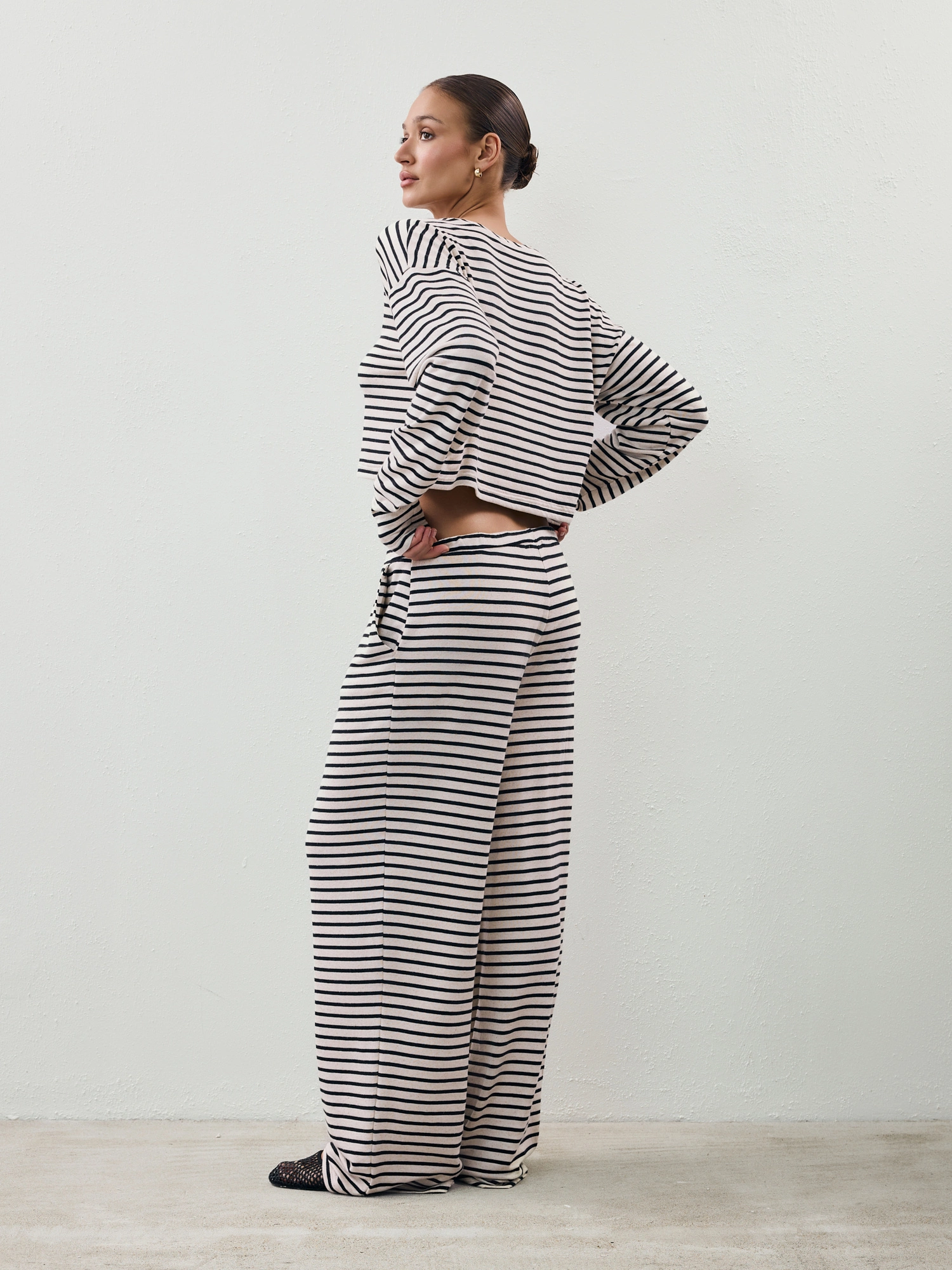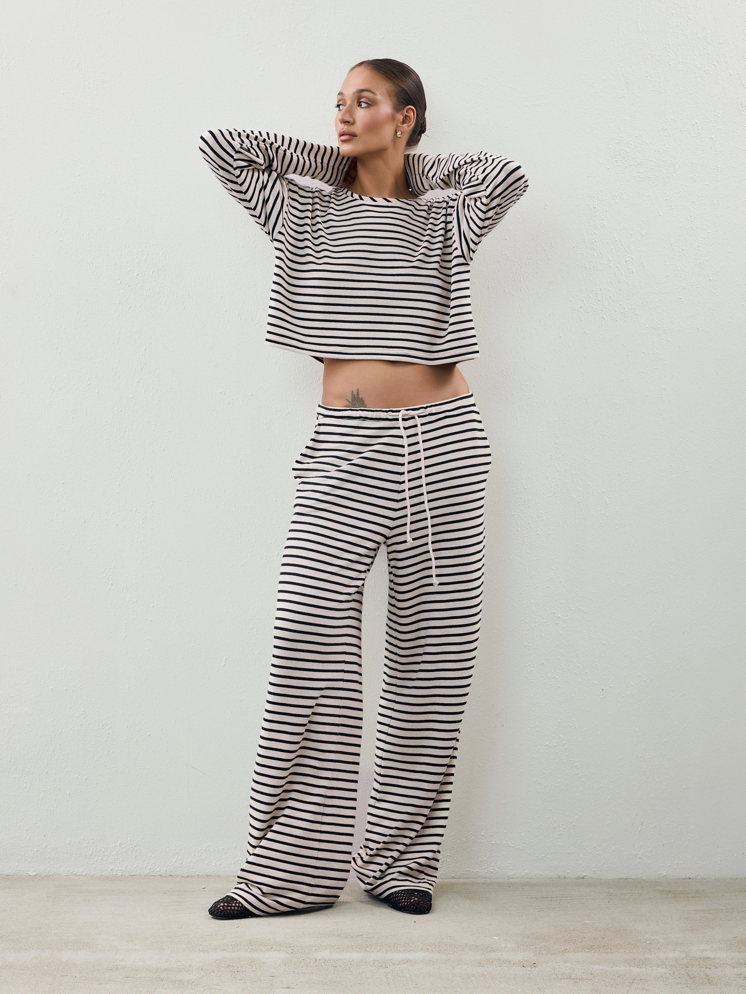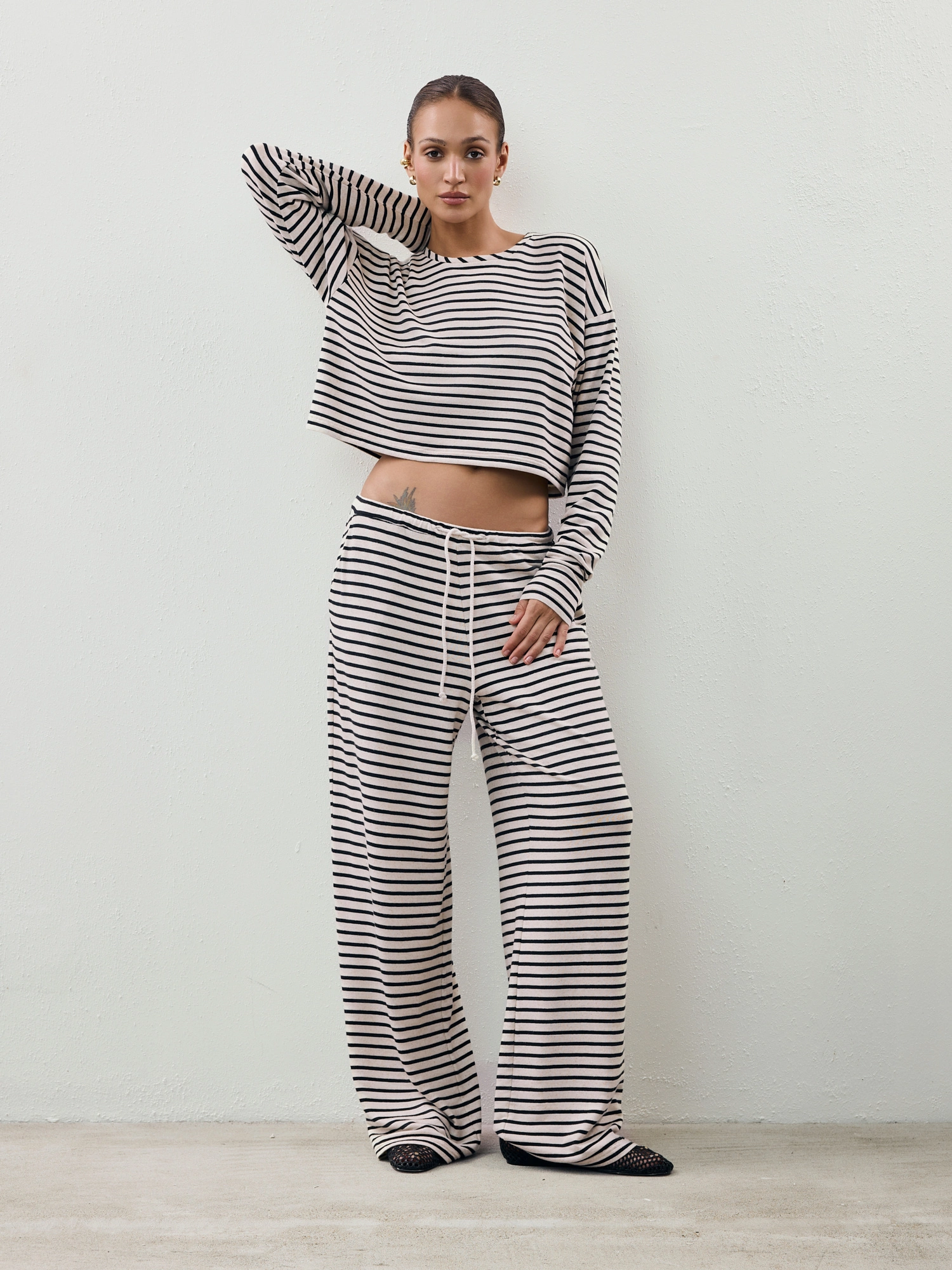 Longsleeve wykonany z przyjemnej dla skóry mieszanki wiskozy, bawełny i lnu o charakterystycznej strukturze lekkiego sweterka. Materiał jest miękki, dzięki czemu idealnie dopasowuje się do sylwetki i przyjemnie ją otula. Ma krótki, pudełkowy fason, a w połączeniu z długimi spodniami lub szortami tworzy casualowy set – idealną wiosenno-letnią alternatywę dla dresów. Zabierz go ze sobą na wakacje, weekendowy wypad za miasto albo po prostu chilluj na kanapie w najbardziej stylowym wydaniu.