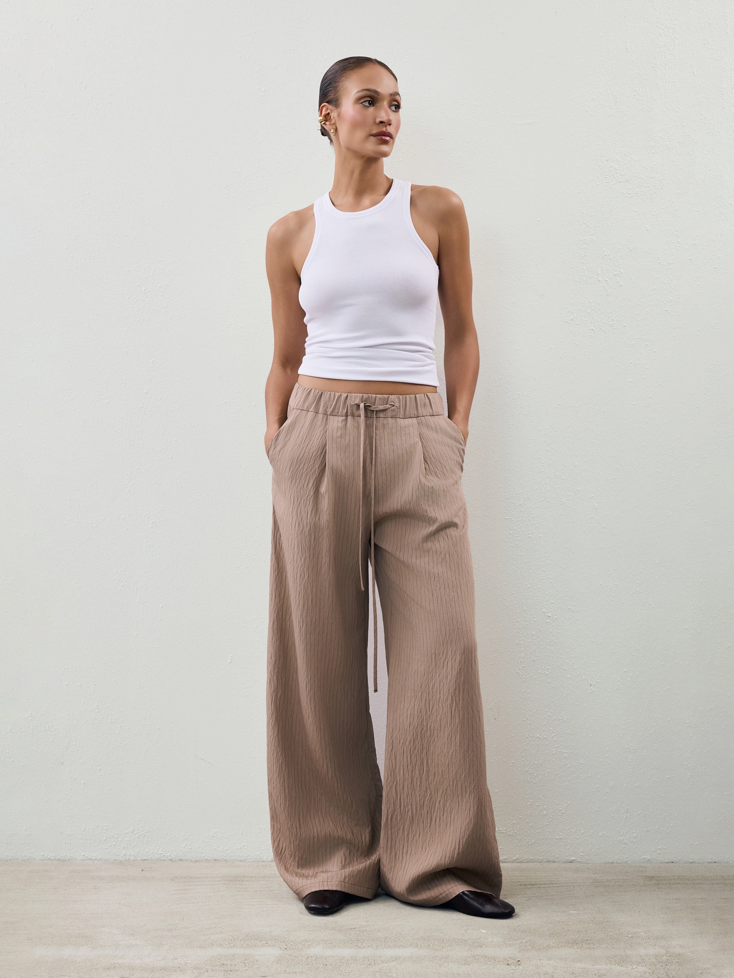 Bokserka wykonana z niezwykle miękkiej i delikatnej dla skóry wiskozy EcoVero z domieszką elastanu. Dzięki prążkowanej strukturze materiał idealnie dostosowuje się do sylwetki, jest wygodny i elastyczny. Noś w wersji sportowej z joggerami lub zestaw z eleganckimi spodniami albo jeansami. Ten top będzie idealną bazą, którą wykorzystasz w wielu stylizacjach niezależnie od okazji.
