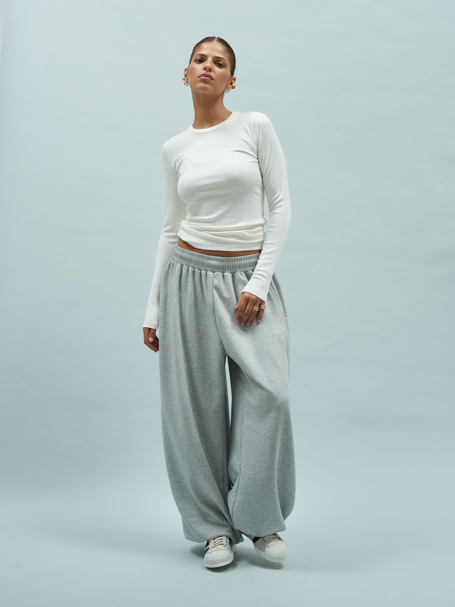Dopasowany longsleeve stworzony z miękkiej, prążkowanej bawełny. Minimalistyczny i zabudowany pod szyją, z charakterystycznie wydłużonymi rękawami. Jego prążkowana struktura sprawia, że jest niezwykle przyjemny, wygodny w noszeniu i idealnie dopasowuje się do sylwetki. Będzie wyglądał rewelacyjnie w połączeniu z dresem HUNTER, ale i ulubionymi jeansami czy spodniami z materiału.