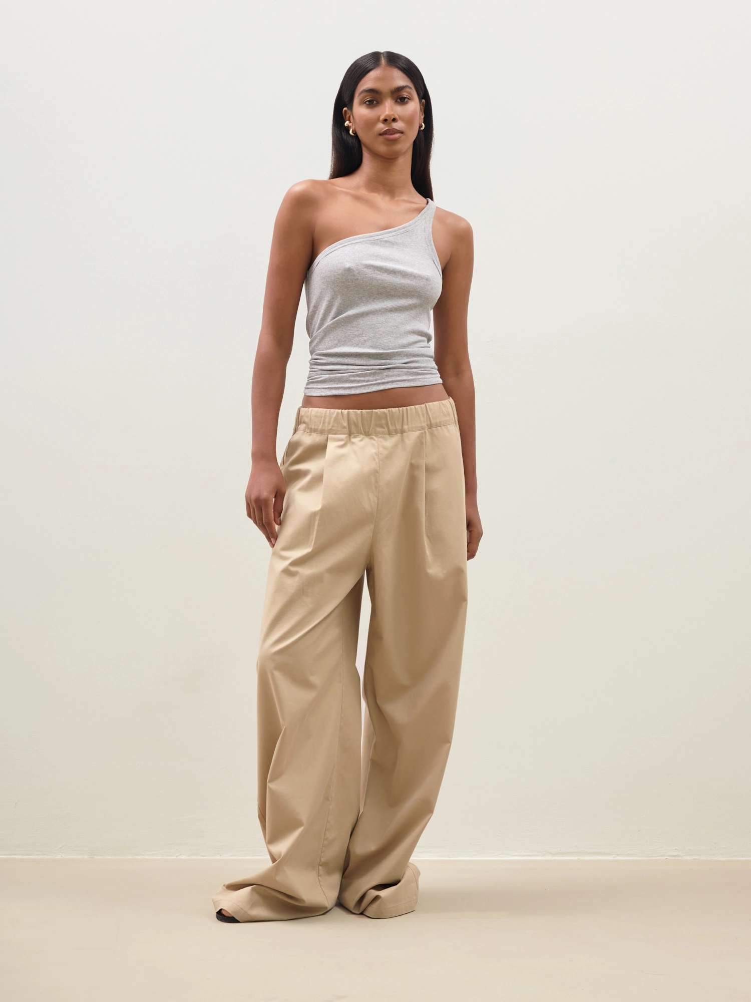 Asymetryczny top wykonany z niezwykle miękkiej i delikatnej dla skóry wiskozy EcoVero z domieszką elastanu. Dzięki prążkowanej strukturze materiał idealnie dostosowuje się do sylwetki, jest wygodny i elastyczny. Noś w wersji sportowej z joggerami lub zestaw z eleganckimi spodniami albo jeansami. Ten top będzie idealną bazą, którą wykorzystasz w wielu stylizacjach niezależnie od okazji.