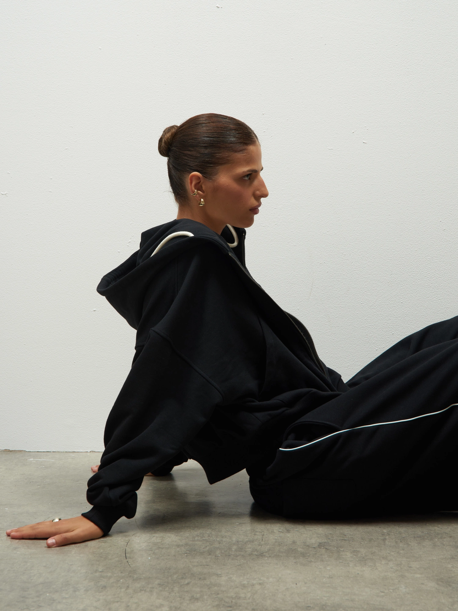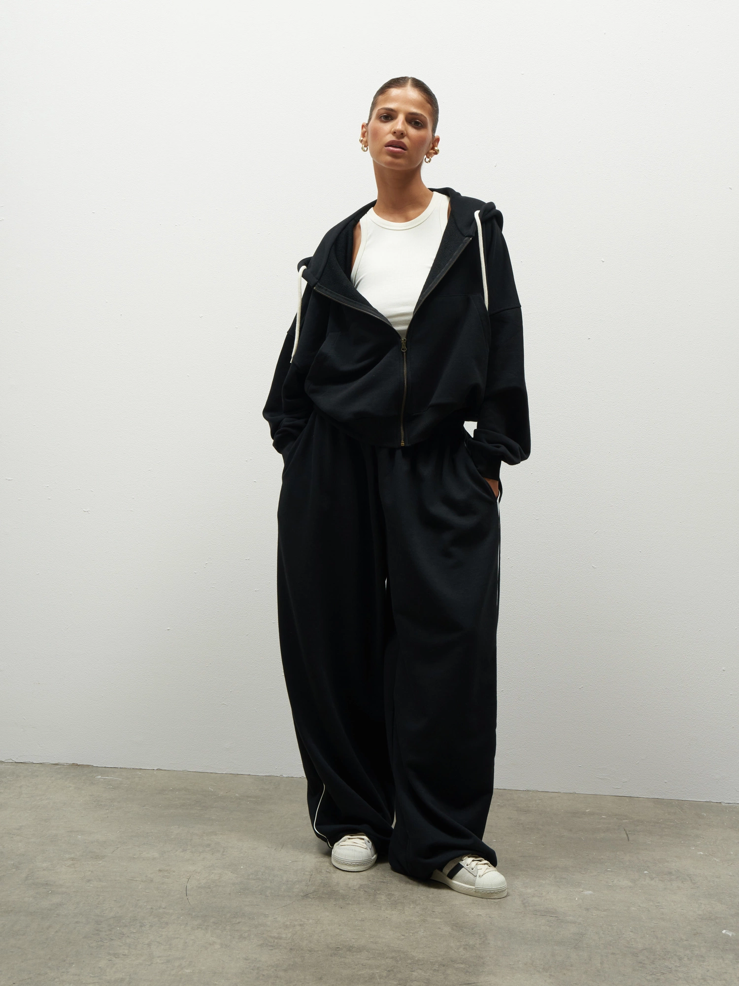 Krótka, pudełkowa bluza oversize z szerokim ściągaczem i obniżoną linią ramion. Jest zapinana na zamek i ma duży kaptur. Wykonana z ultra miękkiej bawełny, od wewnątrz wykończona pętelką. Połącz z dedykowanymi, szerokimi JOGGERAMI i stwórz zestaw idealny na nowy sezon. Noś z jeansami lub ulubionymi spodniami i ciesz się sportową elegancją w najwygodniejszym wydaniu.