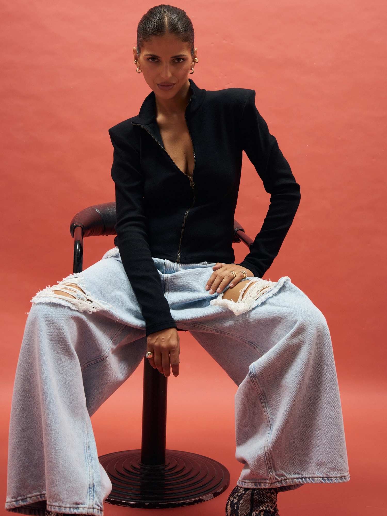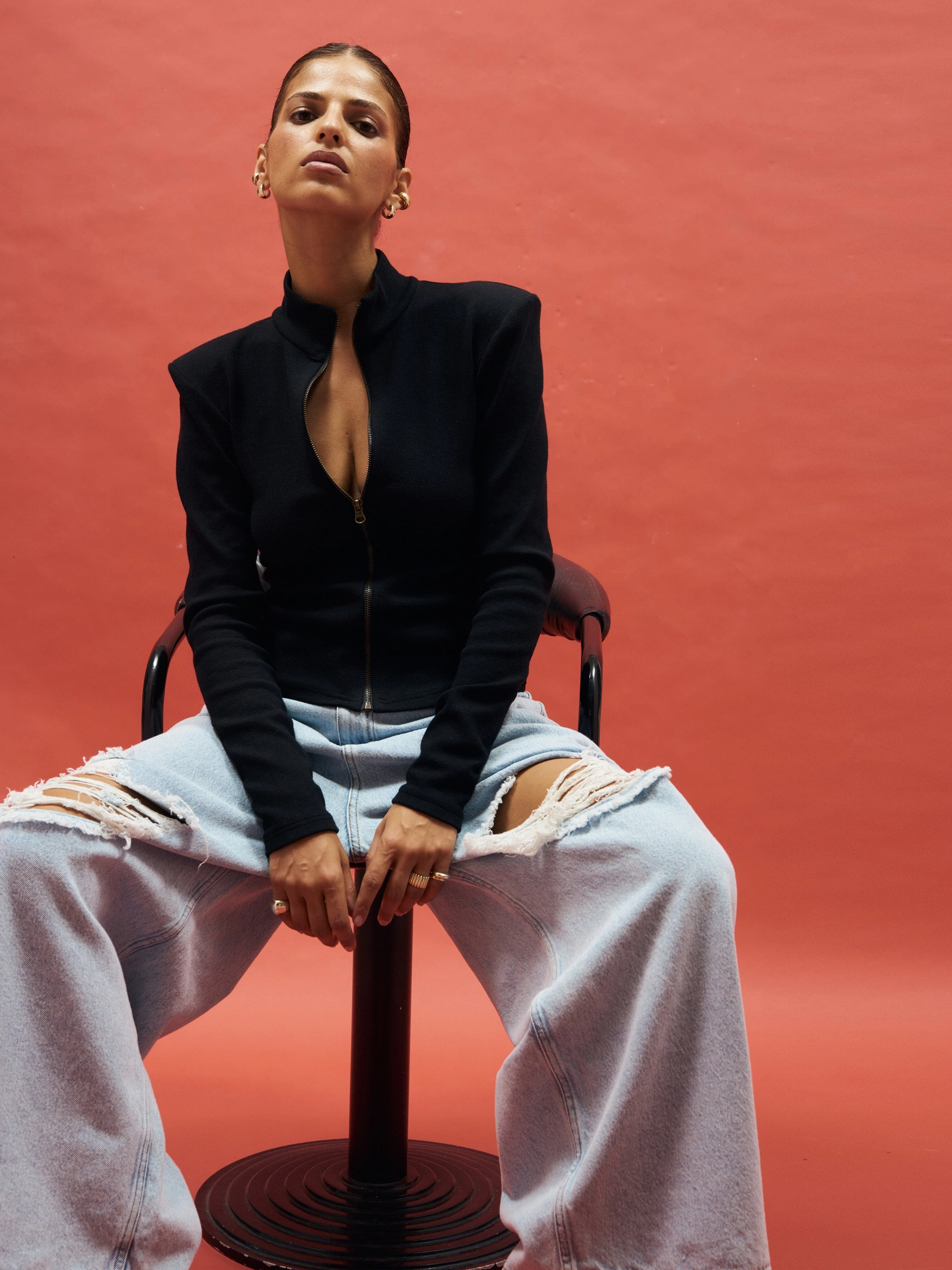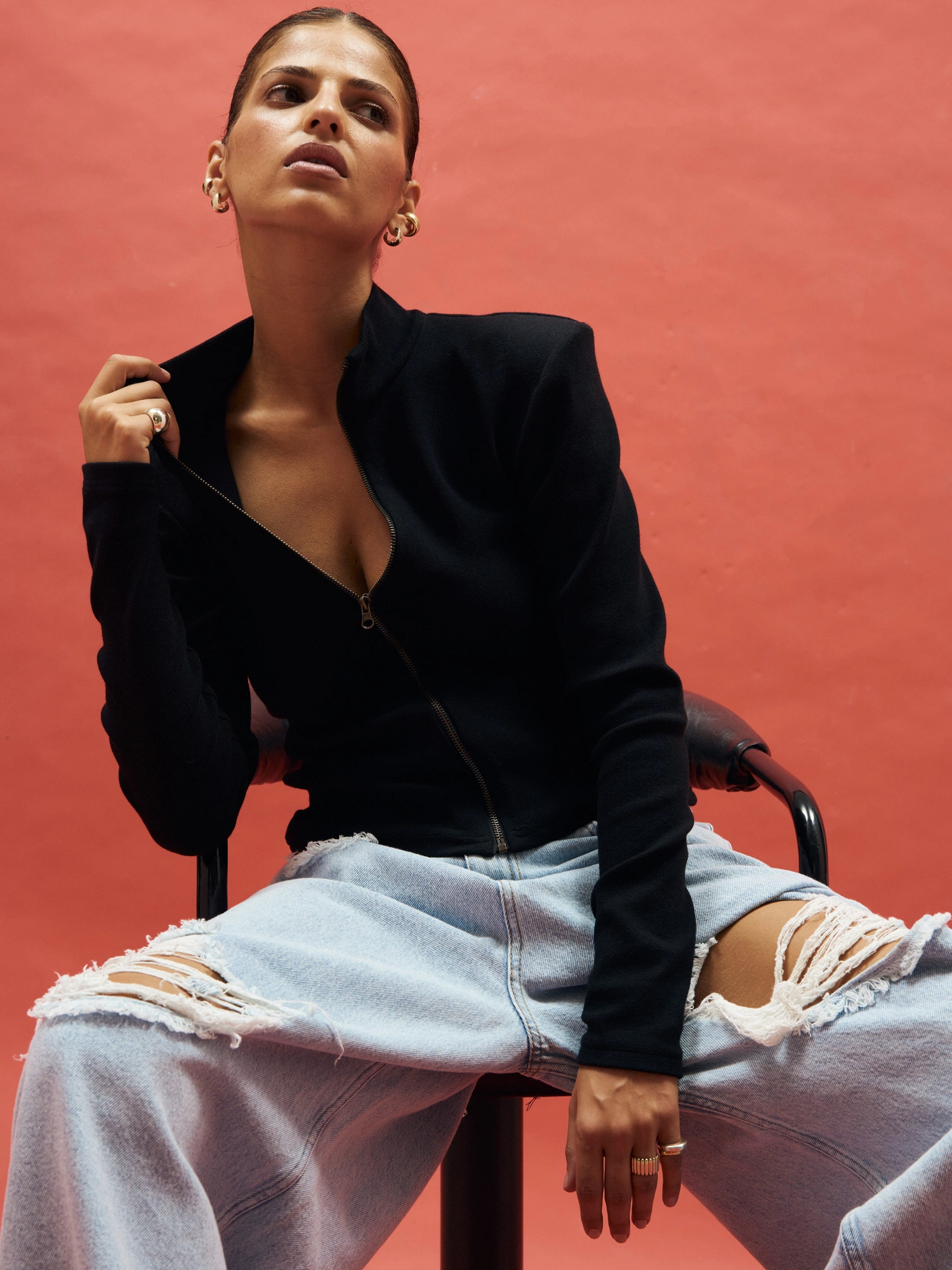 Unikatowy longsleeve wykonany z miękkiej dzianiny o prążkowanej strukturze. Materiał jest elastyczny i świetnie dostosowuje się do sylwetki. Minimalistyczny charakter przełamuje zamek błyskawiczny z przodu oraz mocne ramiona z poduszkami. Całość jest nowoczesna i będzie doskonałą alternatywą dla klasycznych bluzek z długim rękawem, cienkich swetrów i bluz. To idealna propozycja do stworzenia zarówno casualowej, jak i bardziej eleganckiej stylizacji - w połączeniu z dżinsami czy luźnymi spodniami.