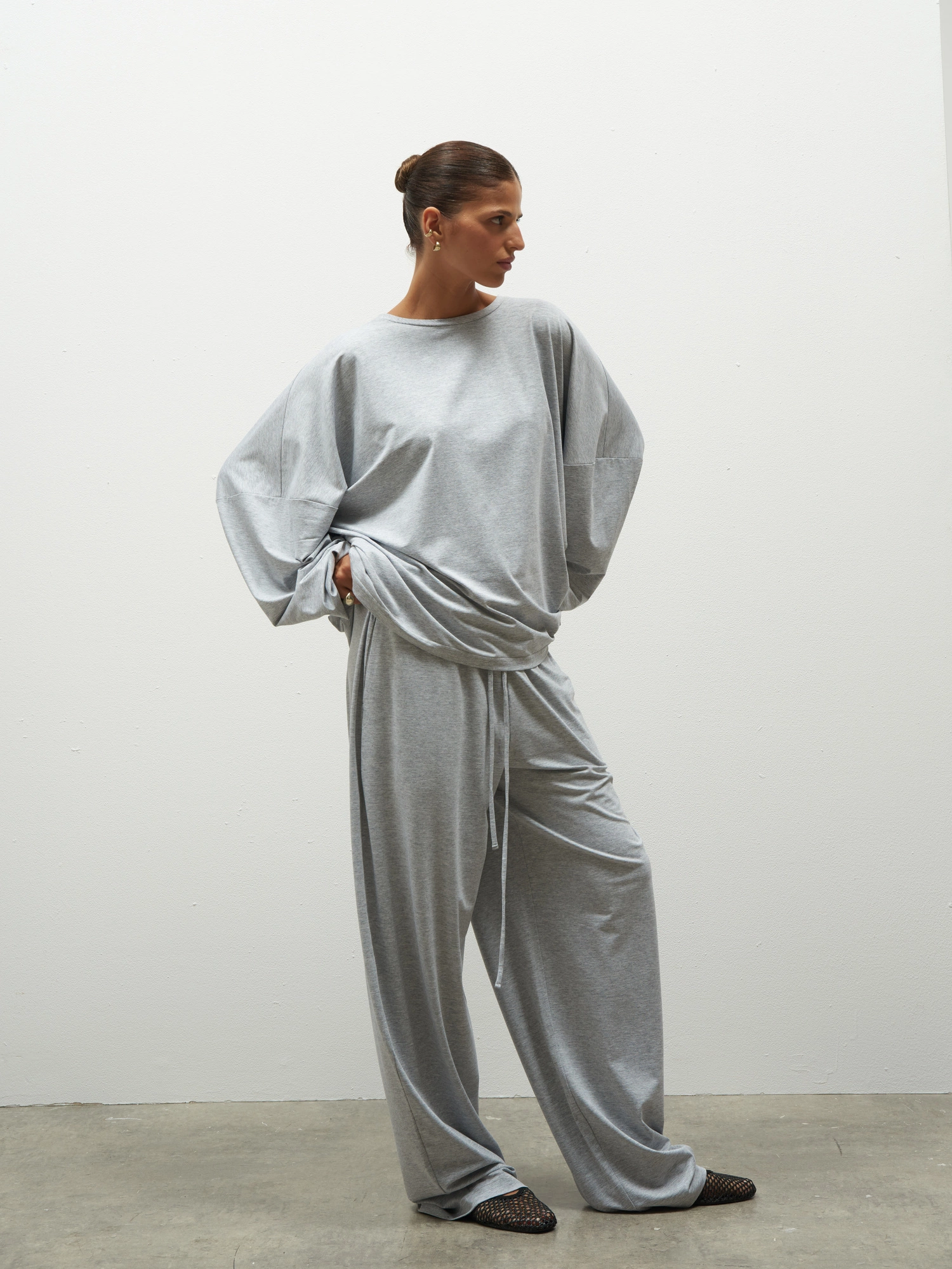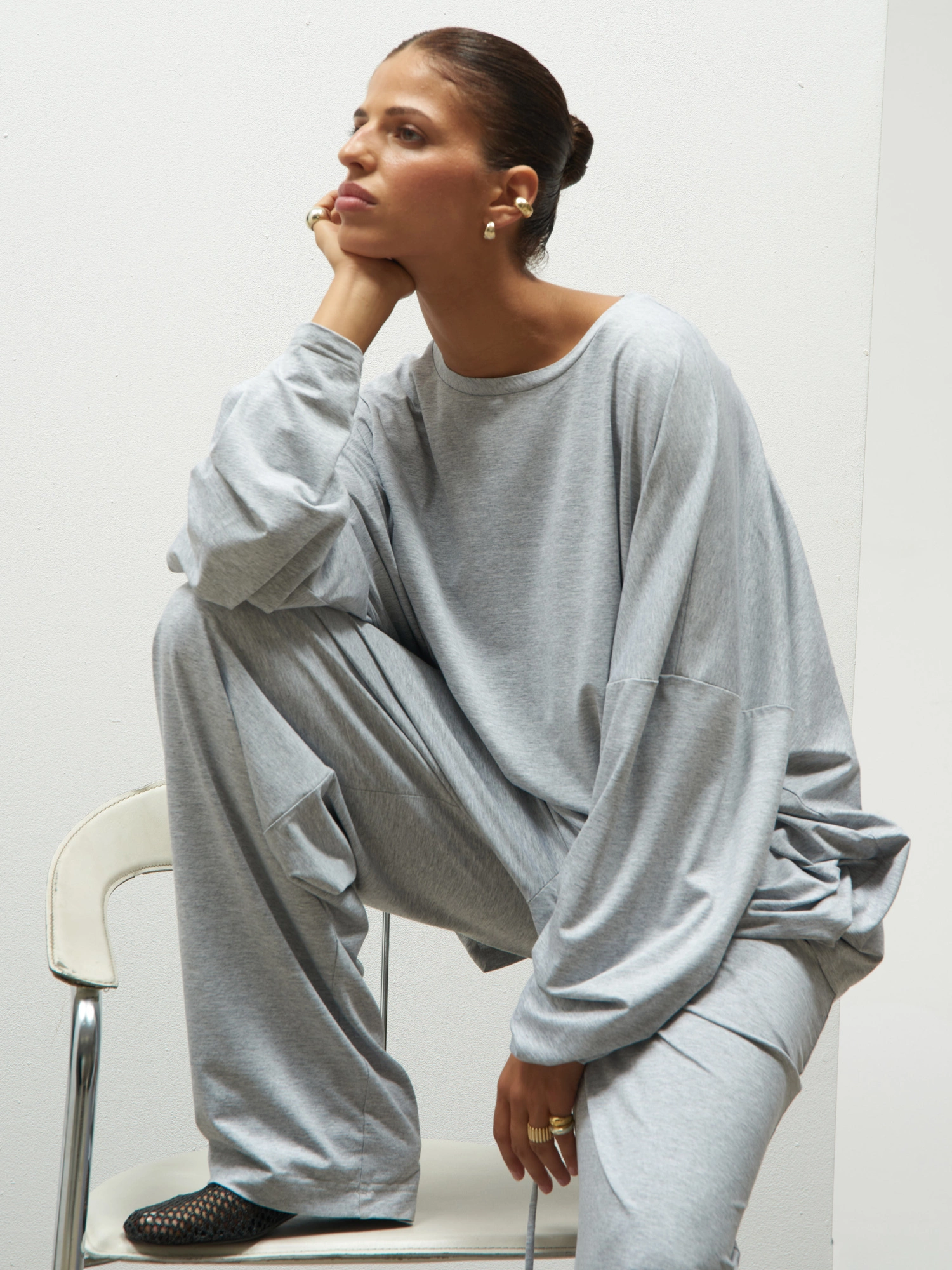 Longsleeve z T-shirtowej wiskozy z dodatkiem elastanu - materiał jest miękki, lejący, delikatnie otula ciało i gwarantuje maksymalny komfort noszenia. Ma swobodny, oversizowy krój z długimi, zwężanymi przy nadgarstkach rękawami. Lekki, przewiewny i niezwykle wygodny. W połączeniu ze spodniami OTIS stworzy zestaw idealny na co dzień, do domu czy w podróży. Noś z jeansami, joggerami lub spodniami z materiału i ciesz się wygodą przez cały dzień. Prosty, minimalistyczny i ponadczasowy.