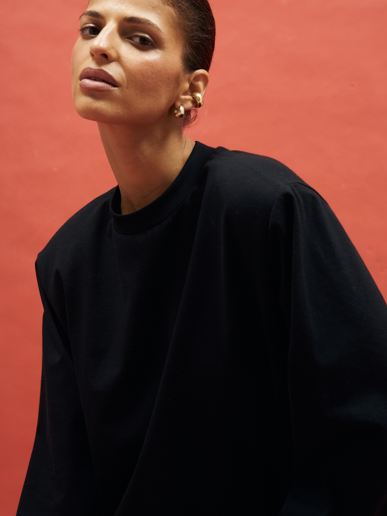 Klasyczny longsleeve utrzymany w fasonie oversize. Ma długie rękawy i mocne ramiona podkreślone odpinanymi poduszkami. Wykonany w 100% z bawełny, dzięki czemu jest miękki, oddychający, a przede wszystkim wygodny. Jest idealną propozycją do codziennych, jak i bardziej eleganckich stylizacji - w połączeniu z dżinsami czy luźniejszymi spodniami materiałowymi. To basic podkręcony wyrazistym detalem, który idealnie sprawdzi się w każdej szafie kapsułowej.