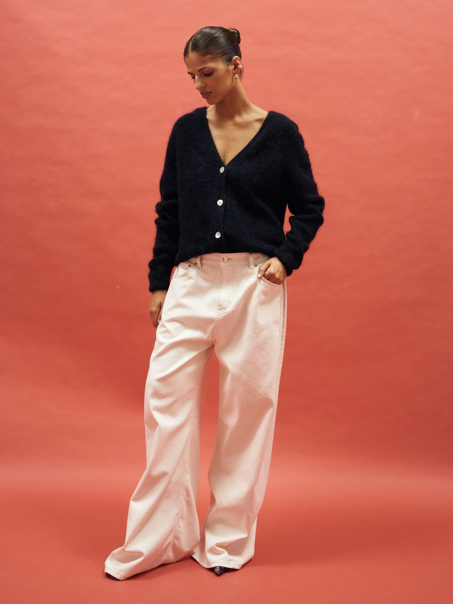 Sweter o klasycznym i prostym kroju zapinany na guziki. Ma dekolt w kształcie litery V oraz długie rękawy. Dzięki zawartości wełny baby alpaka oraz wełny dziewiczej jest wyjątkowo ciepły, lekki i przyjemny w dotyku. Nie gryzie, pięknie układa się na sylwetce i otula komfortem w chłodniejsze dni. Jego minimalistyczny, ponadczasowy krój sprawia, że pasuje zarówno do codziennych, jak i bardziej eleganckich stylizacji. Noś go z ulubionymi jeansami, materiałowymi spodniami lub elegancką spódnicą – sprawdzi się w każdej wersji.